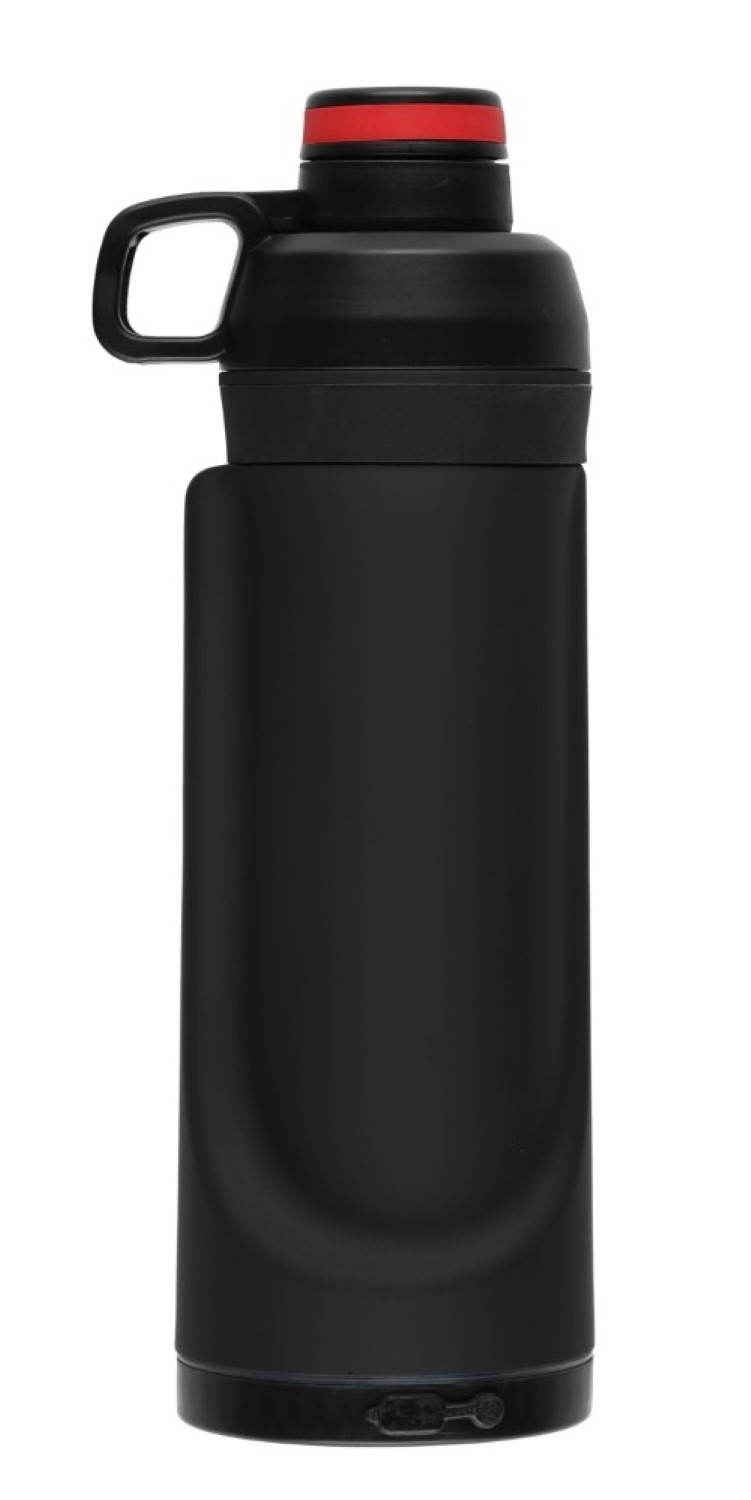 Design skyddad! Innehåller två olika delar: du kan lägga en telefon, ett bankkort och nycklar i från den nedre delen och du kan hälla i vatten i den övre delen. Allt du behöver går enkelt med dig i flaskan!