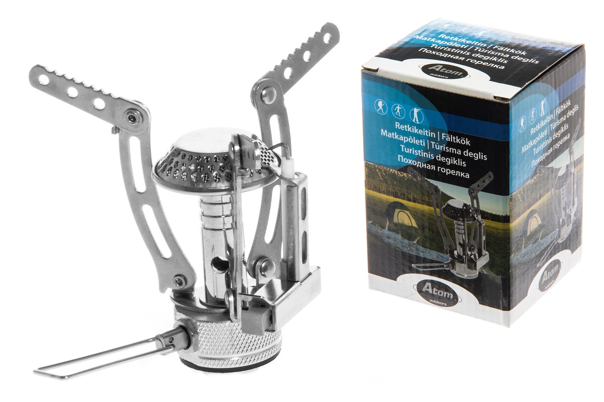 Fältkök Atom Egenskaper: Material: Aluminium + rostfritt stål Fällbar modell 3000 W Fungerar på gas