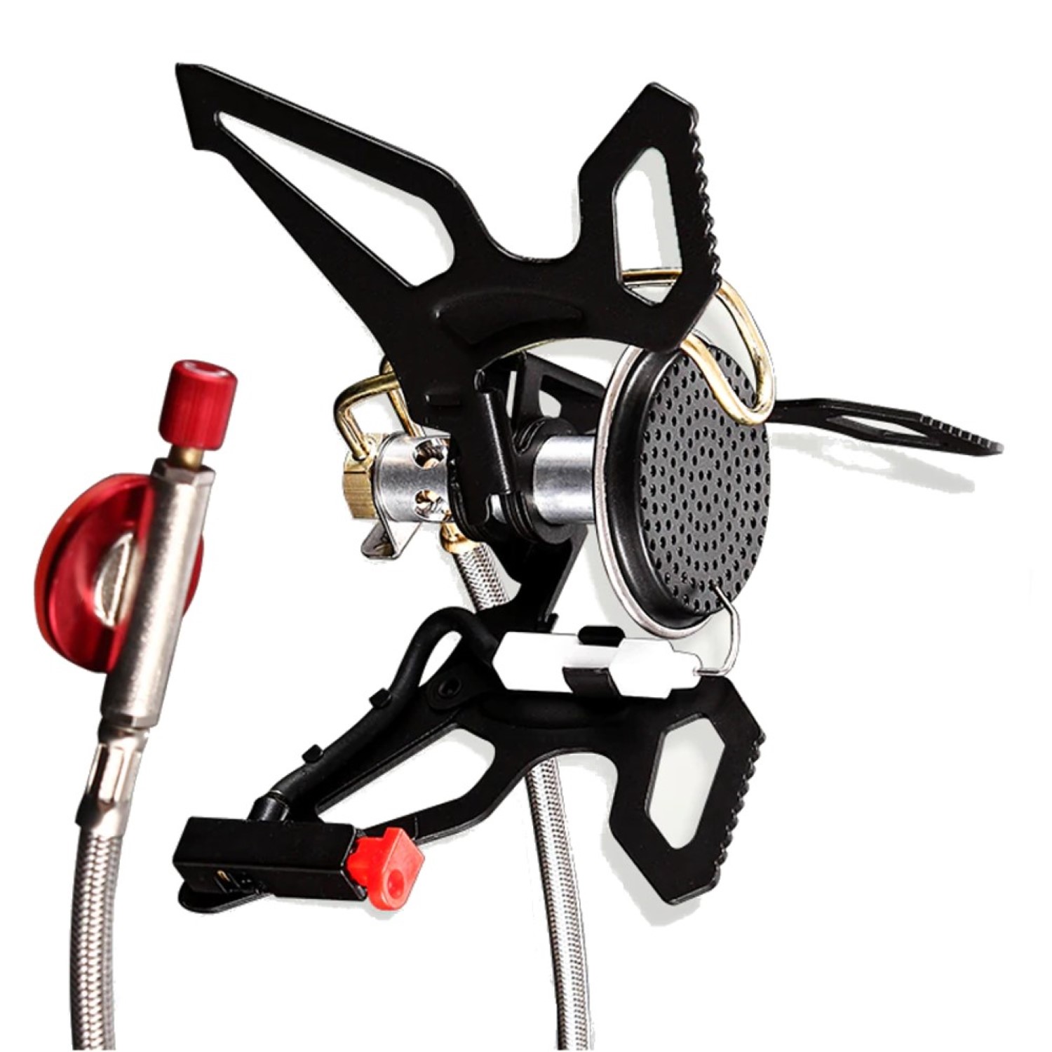 Out-Zone gaskök för camping är väl lämpad för vandring, stuga och cykling och är tillverkad av en höghållfast aluminiumlegering och rostfritt stål. Brännaren är mycket stabil och hållbar. Dess elektroniska tändning ger komfort och lätthet i terrängförhållanden. Tänderna formade på hällen håller kokkärlet stadigt och säkert ovanpå lågan. Struktur och design av brandhuvudet som ökar förbränningseffektiviteten.
