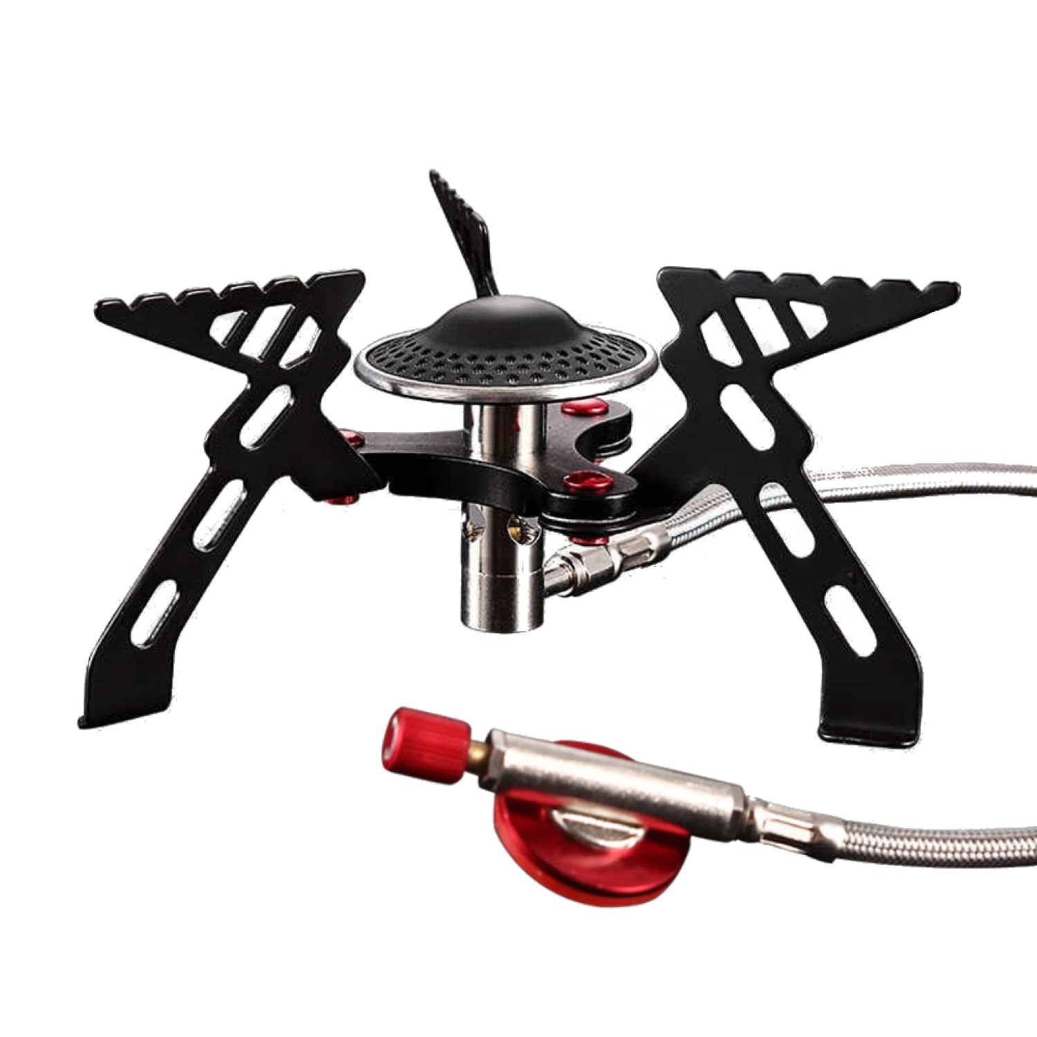 Out-Zone gaskök för camping är väl lämpad för vandring, stuga och cykling och är tillverkad av en höghållfast aluminiumlegering och rostfritt stål. Brännaren är mycket stabil och hållbar. Dess elektroniska tändning ger komfort och lätthet i terrängförhållanden. Tänderna formade på hällen håller kokkärlet stadigt och säkert ovanpå lågan. Struktur och design av brandhuvudet som ökar förbränningseffektiviteten.