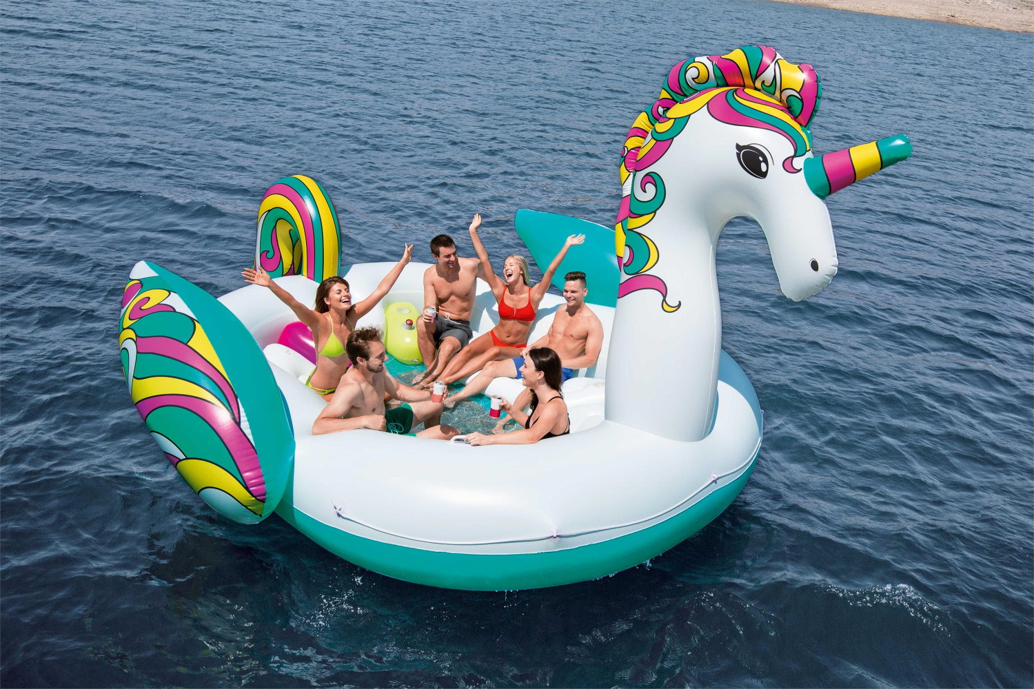 Enhörningen-modellen är en het sommarprodukt! Du kommer helt klart ha den bästa vattenleksaken på stranden och det finns utrymme för hela 6 vuxna eller massor med barn! Och med denna enorma enhörning så får du med lagningssats och ankare, vilket gör att du kan njuta på valfri plats i din enhörning. Enhörningen har bekväma sitplatser och mugghållare, vilket kommer göra det bekvämt att sitta och njuta ute på sjön.