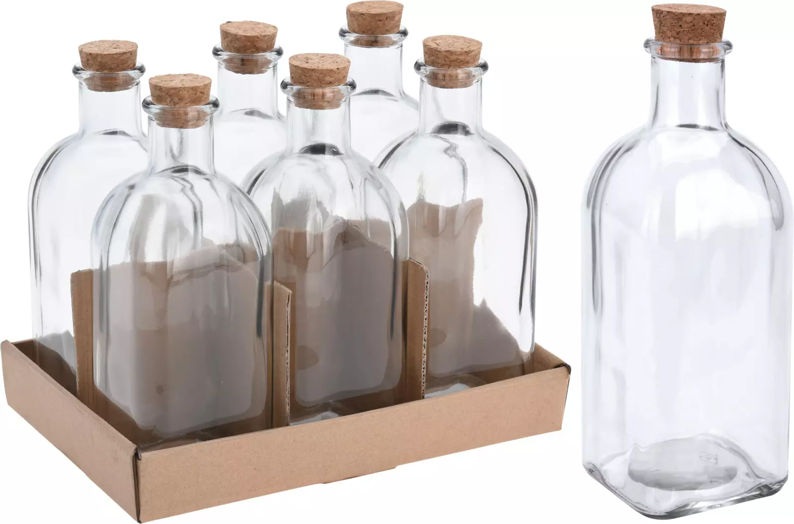 Glasflaska 500ml, rektangulär, korkkork. Storlek: 78x78x200mm. Perfekt elegant förvaringslösning.