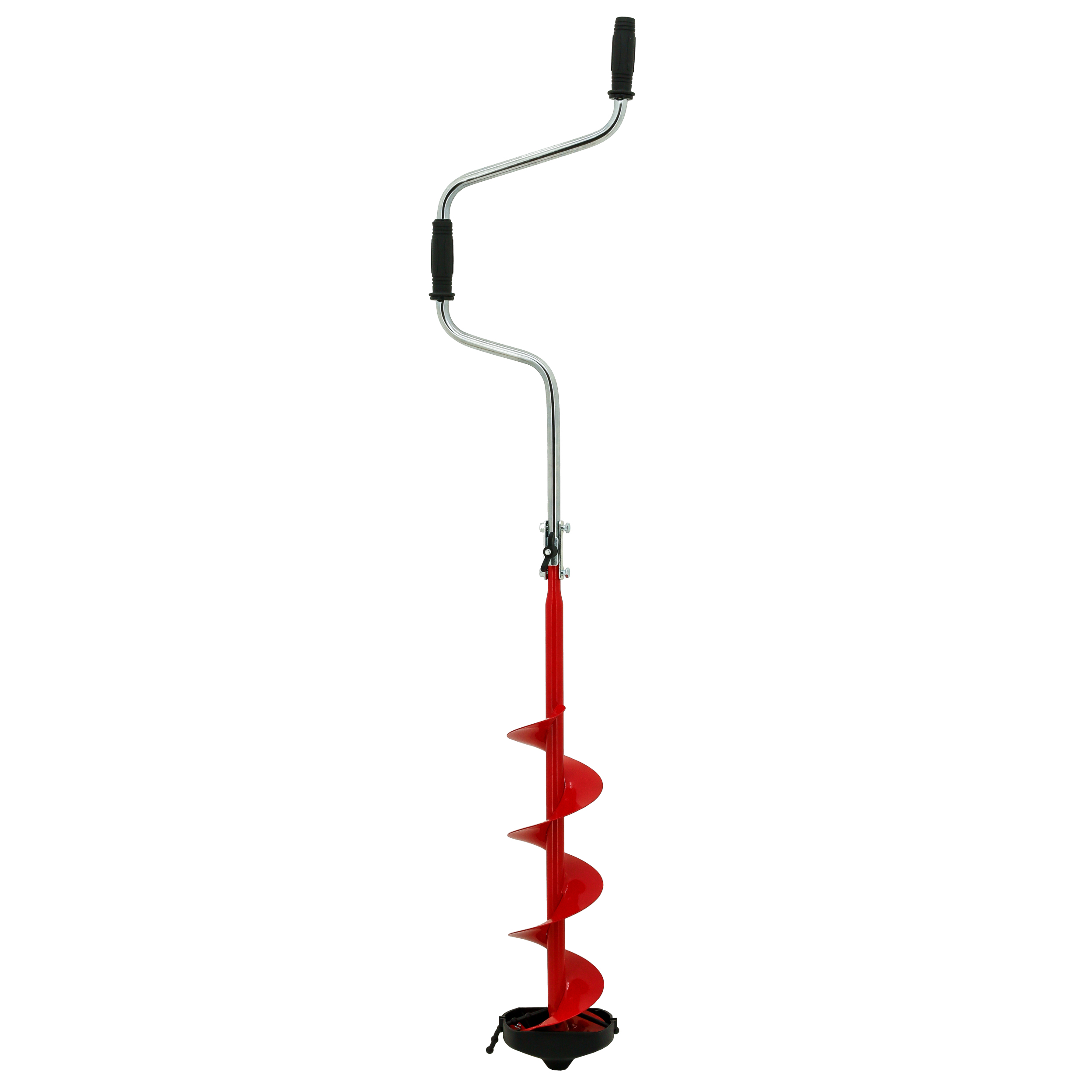 Högkvalitativ hopfällbar isborr med handtag av kolstål och utbytbara blad.
