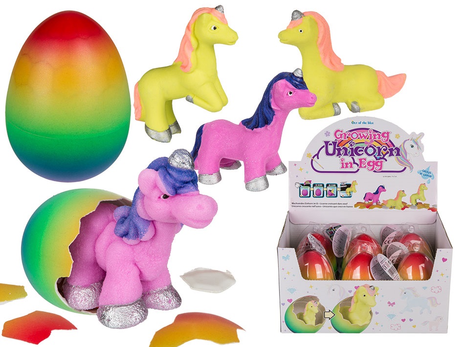 OBS! En bra ide är att använda en glasbehållare, vilket gör det lättare att övervaka kläckningen. Leksakens höjd är 11 cm. Efter den kläckts så är enhörningen av gummi. En spännande leksak!