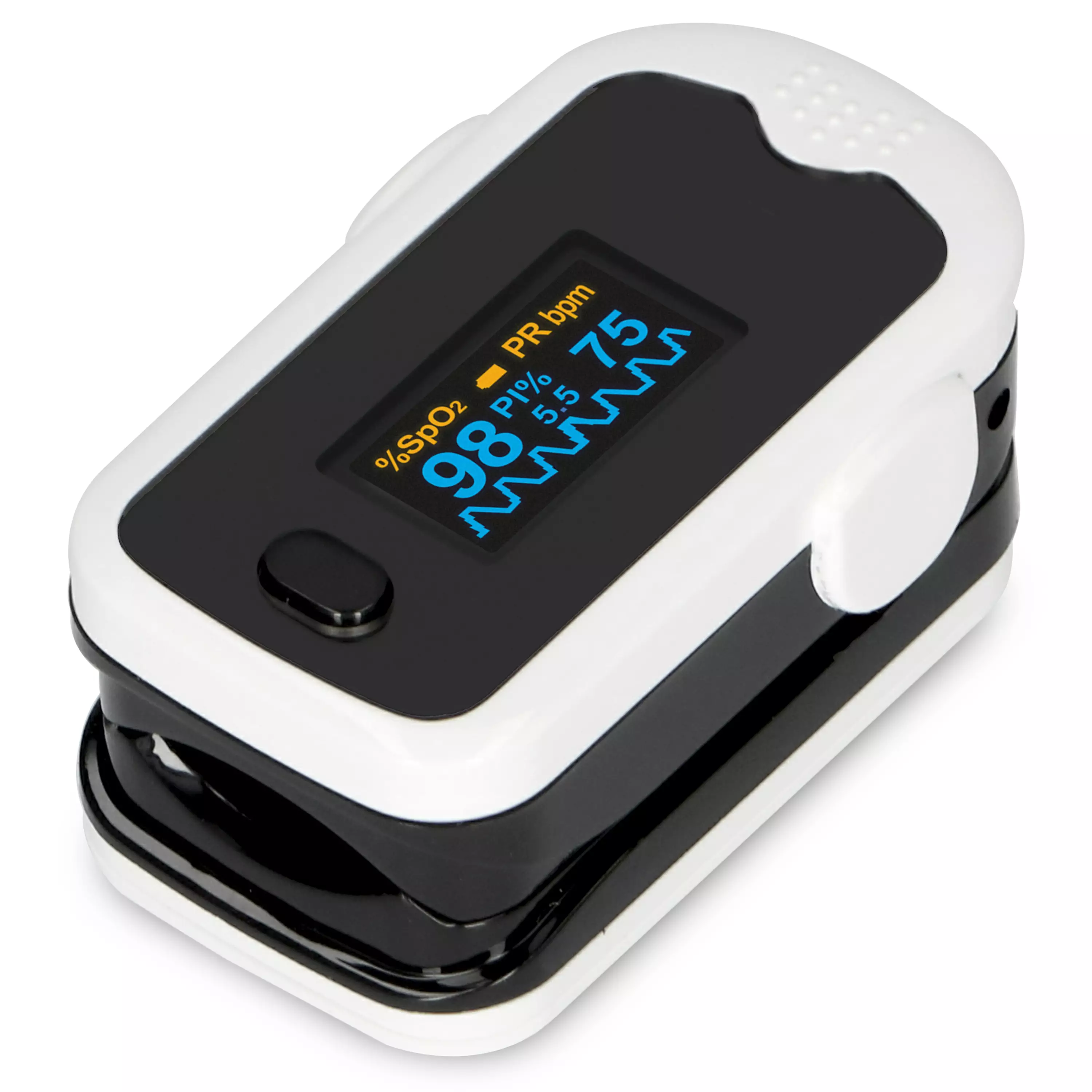 Den prisvärda saturationsmätaren ACS-31 för noggranna och snabba självmätningar Alecto ACS-31 Saturation Monitor kan snabbt och enkelt mäta din hjärtfrekvens och ge dig en uppfattning om mängden syre i blodet. Denna saturationsmonitor är ett säkert och tillförlitligt instrument som till fullo uppfyller våra höga kvalitetskrav. Förutom mätnoggrannheten är saturationsmätaren enkel att använda och levereras med ett armband och två AAA-batterier. Viktiga funktioner En mättnadsmätare är ett dagligt hjälpmedel för många människor och bör därför vara snabb och enkel att använda. Dessutom uppfyller denna mättnadsmätare ett antal andra krav som våra kunder värdesätter, t.ex: Utmärkt värde för pengarna; mätaren är mycket prisvärd med tanke på dess höga kvalitet. Den mycket exakta mätningen av både din hjärtfrekvens (bpm) och mängden syre i ditt blod (SpO2). Mätningshastigheten; du är klar på ungefär en minut. Bekvämligheten, vilket sparar dig ett besök hos allmänläkaren eftersom du kan göra det hemma. Specifikationer och noggrannhet Vi har utrustat vår saturationsmonitor med en OLED-färgdisplay som är lätt att läsa av. Den ger dig en bild av din hjärtfrekvens och mängden syre i blodet. Detta visas i form av siffror, vågrörelser och ett diagram. Du kan ställa in ett larm för för höga eller för låga värden. Om du lägger ifrån dig mätaren stängs den av automatiskt för att spara på batteriet. Batteriernas drifttid är ca 24 timmar, så det blir hundratals mätningar. Här är en översikt över mätningarnas noggrannhet: Intervall för bpm (pulser per minut): 25 bpm - 250 bpm Pulsupplösning: 1 bpm Pulsnoggrannhet: 2 bpm SpO2-intervall (procentandel syre i blodet): 0 - 100% SpO2 upplösning: 1% SpO2-noggrannhet: ± 2% vid 0 - 100% (ej fastställd för 0 - 69%) Alectos saturationsmonitor är en väldesignad och användarvänlig produkt av hög kvalitet. Vad finns i förpackningen? Mättnadsmätare Armband Två alkaliska AAA-batterier Bruksanvisning NL / EN / DE / FR