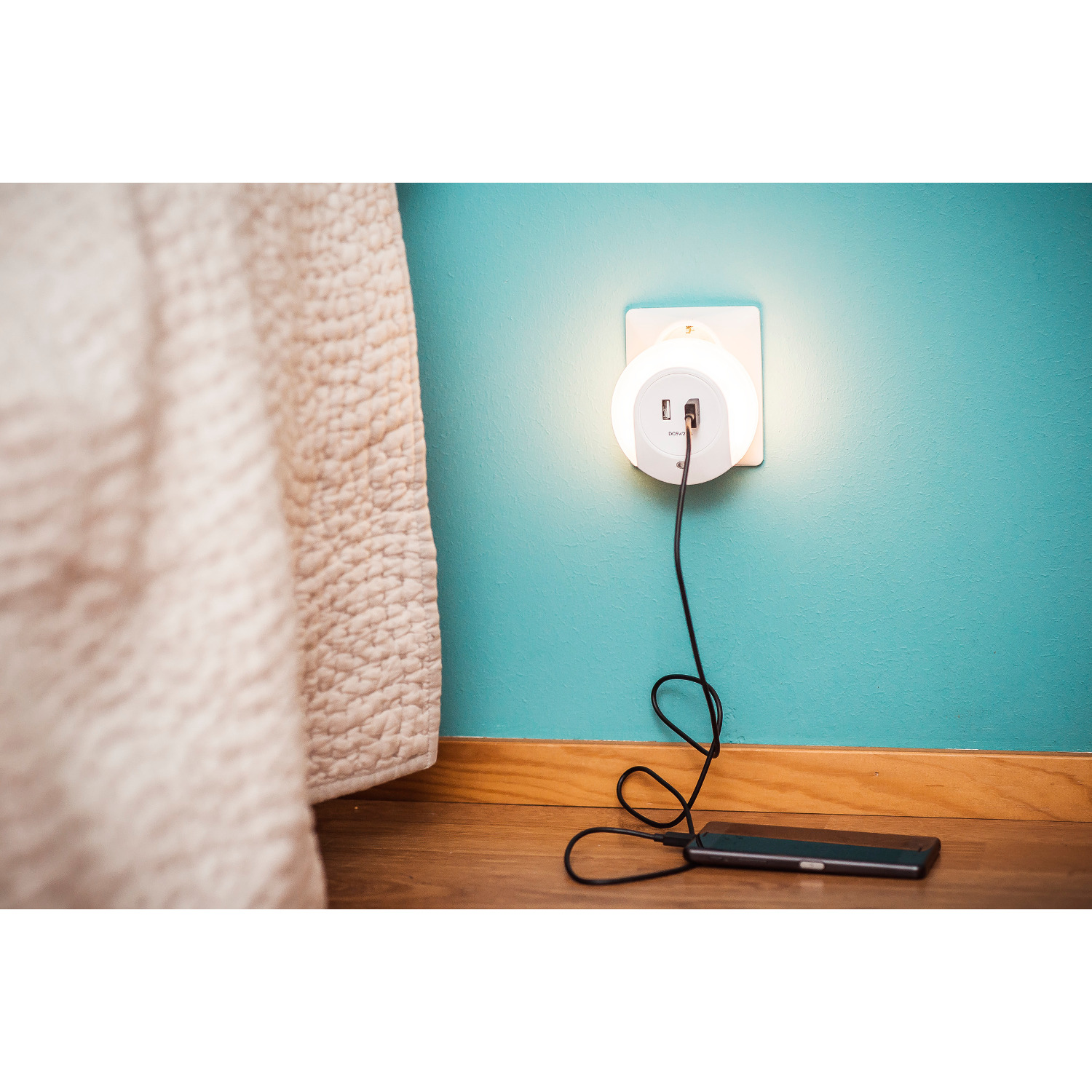 LED-nattlampa som är energieffektiv och långlivad. Lampan är utrustad med skymmersensor och 2 st USB-portar.