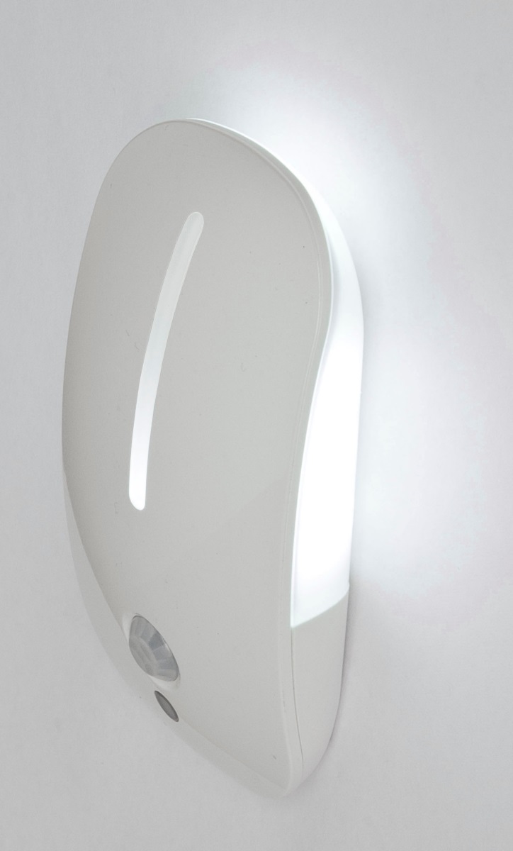 Den snygga nattlampan för vägguttag är utrustad med skymningssensor och PIR-rörelsedetektor. Lampan tänds då det är tillräckligt mörkt och endast när något varmt rör sig förbi - inte för objekt som tex gardinen som viftar.
