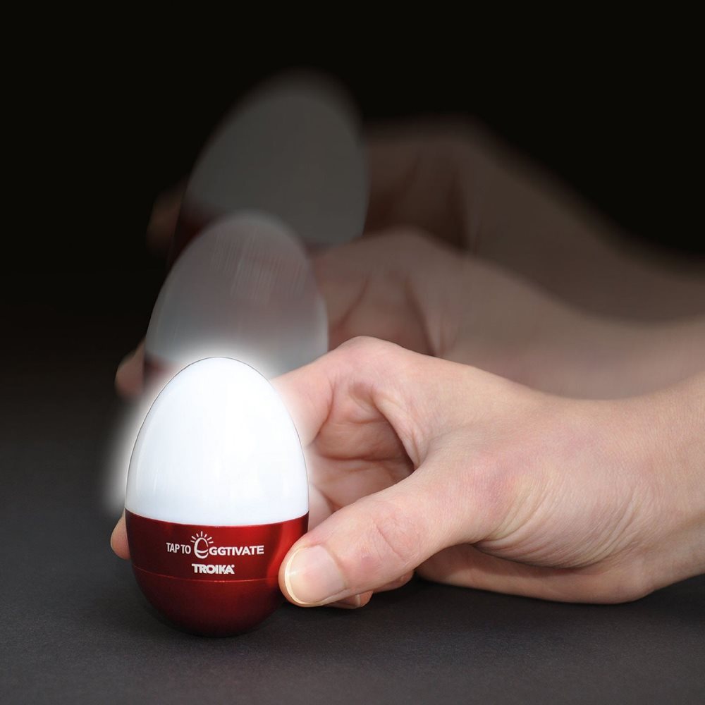 Otroligt häftiga Eggtivate nattlampa sätts på när du trycker det försiktigt mot bordet! Den slocknar av sig själv efter 6 minuter.