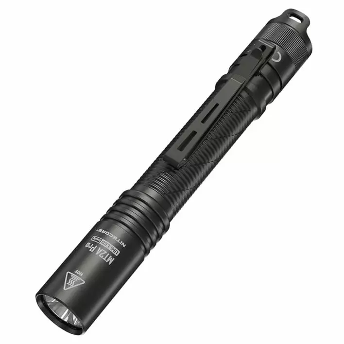 Nitecore MT2A Pro är en kompakt och ultralätt ficklampa som ger ett ljusflöde på upp till 1000 lumen och en ljuskägla som når upp till 255 meter. Ficklampan är lätt att använda med en hand. Den drivs av ett uppladdningsbart Li-ion-batteri eller alternativt av två AA-batterier. Ficklampan ger upp till 20 timmars kontinuerlig drift på en enda laddning.
