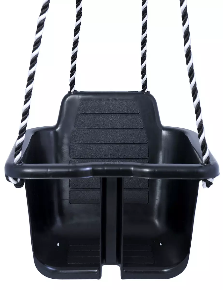 Svart babygunga inkluderar snören och upphängningsringar. Höjd 26 cm, bredd 35 cm. Viktgräns 30 kg.