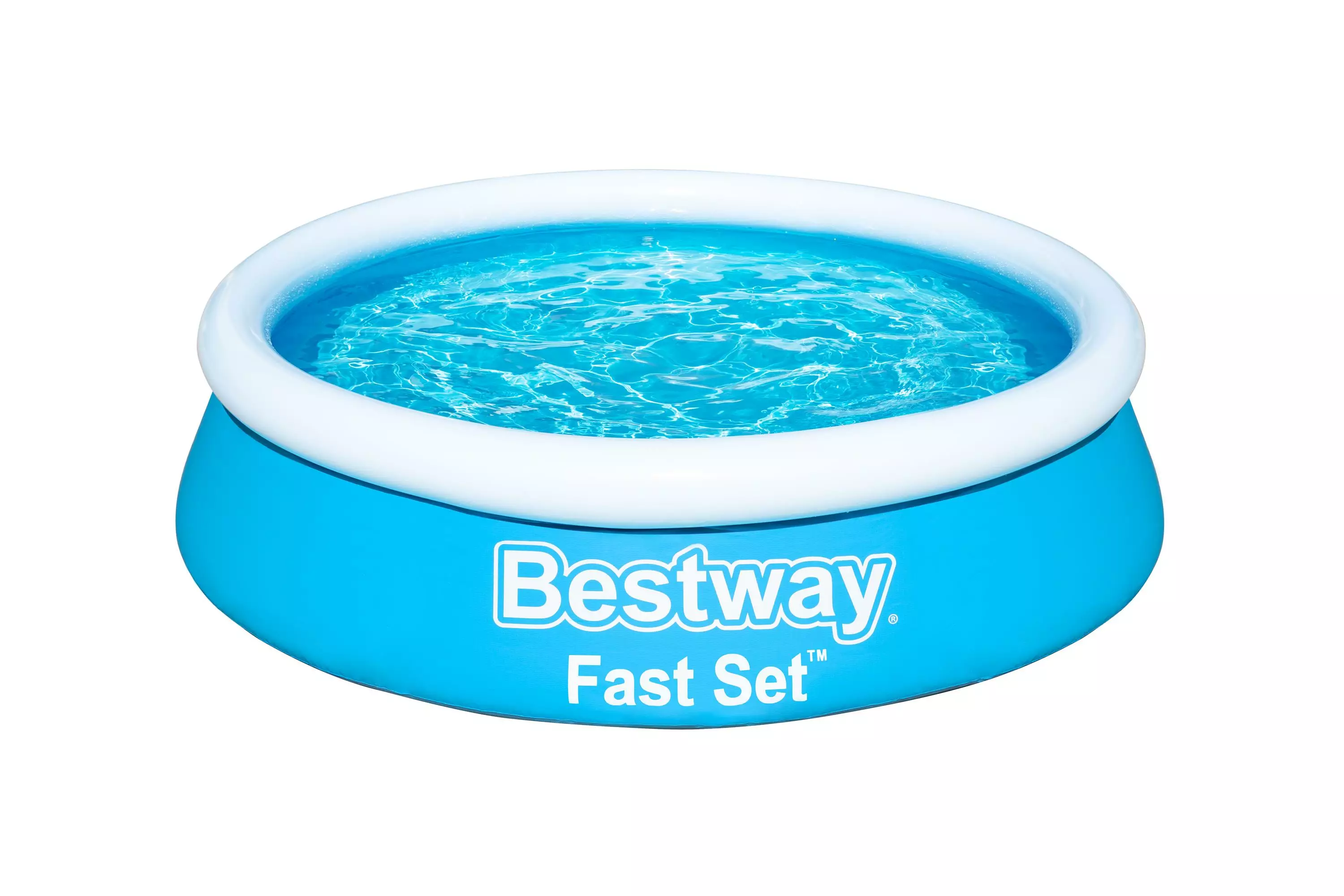 Denna pool är snabb och enkel att installera, det tar bara 10 minuter! Slitstarka Tri-tech väggar, 3-lagers slitstark PVC och polyester. Fyllbar toppring som stödjer poolen. Välj en plan yta och fyll toppdäcket med luft. Väggarna i poolen reser sig när poolen fylls med vatten.