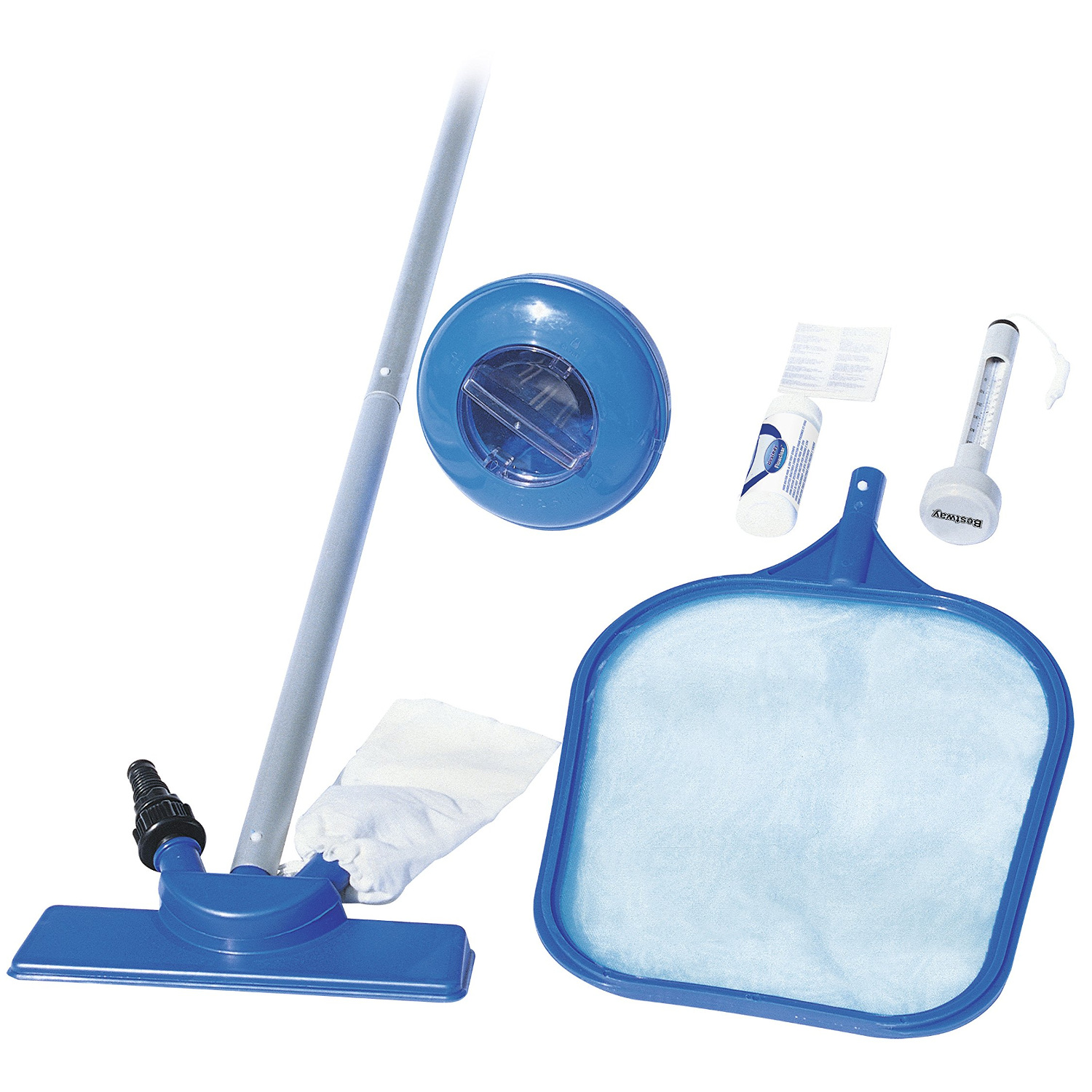 Innehåll: Påle med dammsugnings- och avskummarhuvuden, en kemisk flottör, en termometer, 50 provremsor, 9 kraftiga lagningslappar.