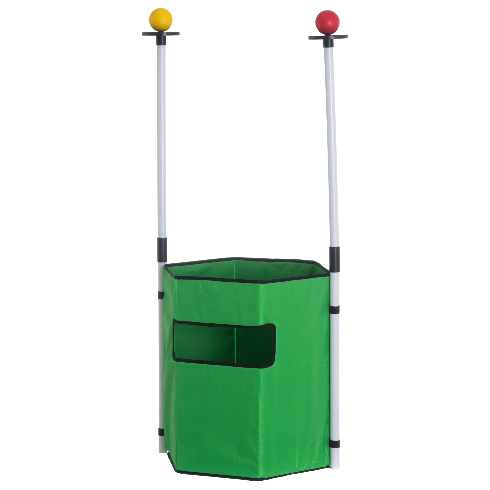 2 väderbeständiga hopfällbara mål, 1 stor ring, 2 pinnar och 2 bollar, 6 ärtpåsar (två lagfärger), 6 ringar (två lagfärger), 2 puckar.