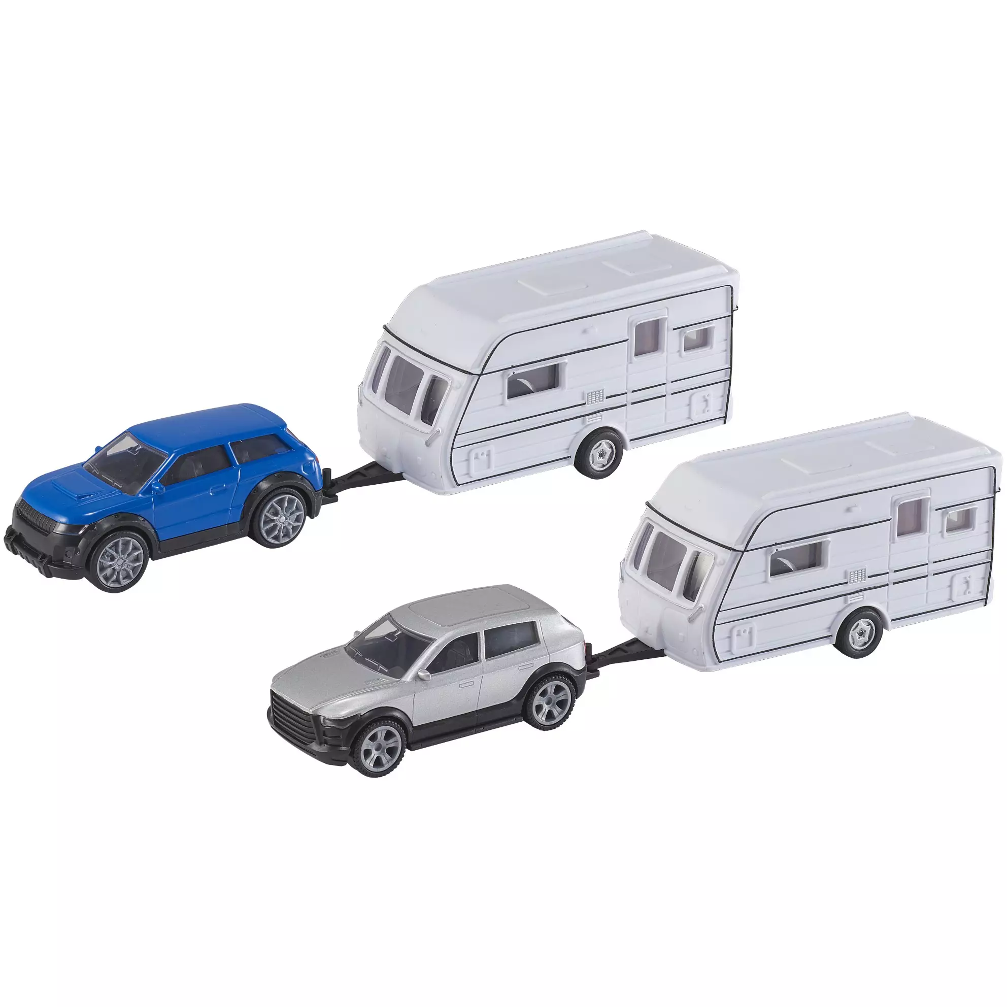 Teamsterz Street Kingz småbil och husvagn erbjuder oändligt med skoj för lekar. Detta mycket detaljerade lekset innehåller en bil och en avtagbar husvagn, båda med fritt rörliga hjul. Leksakerna är i ungefär 4 tum skala och finns i två olika varianter. Setet är perfekt för semesterspel hemma.