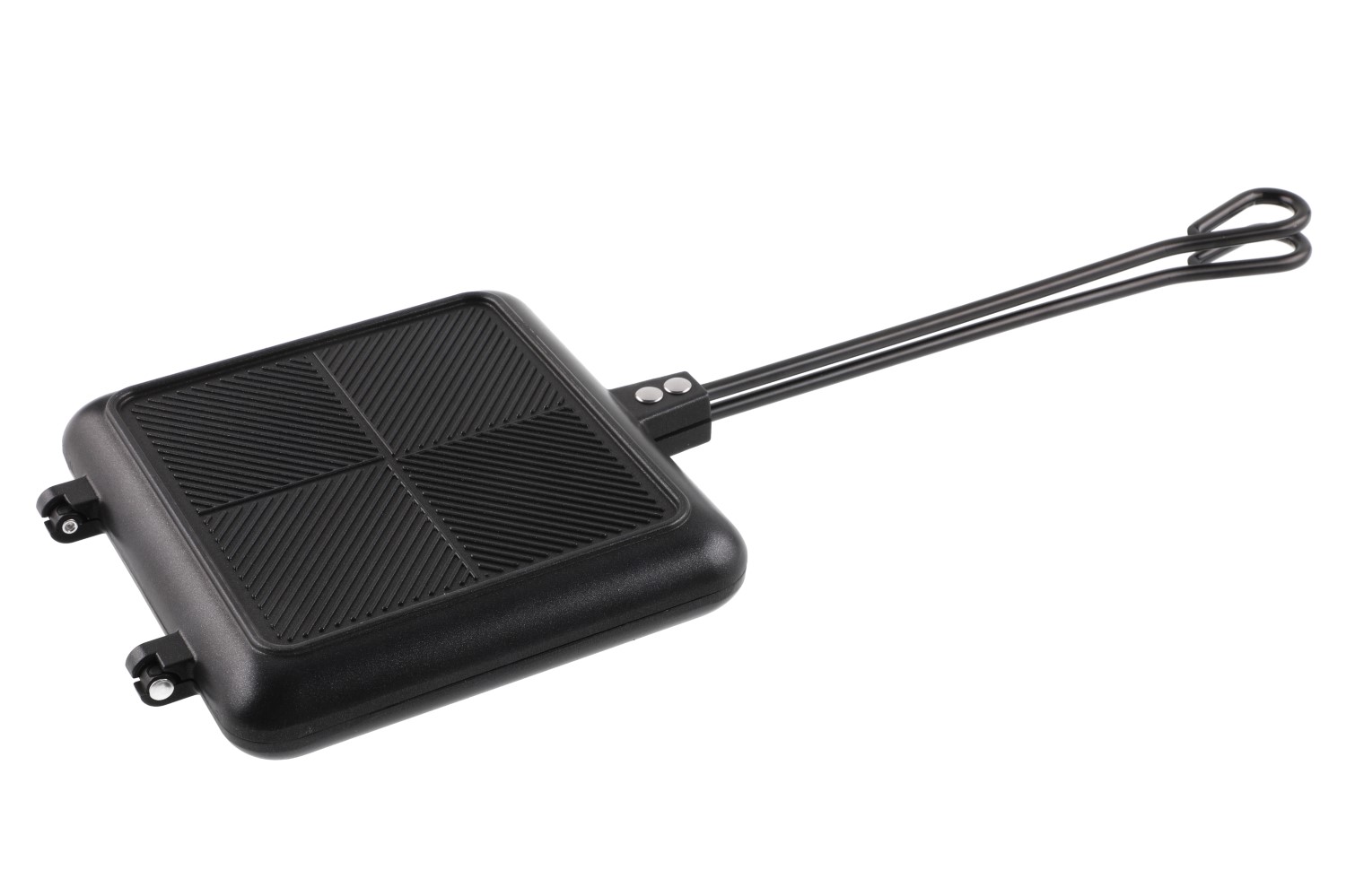 Sörgåsgrillen är tillverkad i gjutet aluminium med non-stick beläggning. Perfekt att ha med sig till brasan.