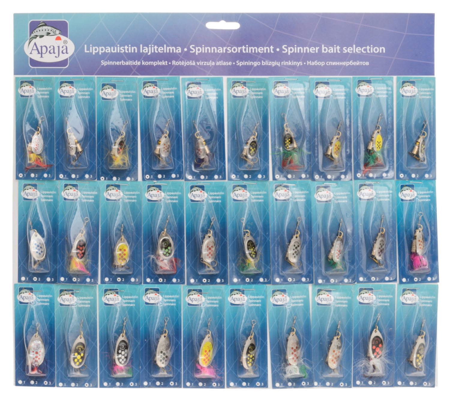 Sortiment av olika fiskedrag. Storlek 1, 2 och 3.