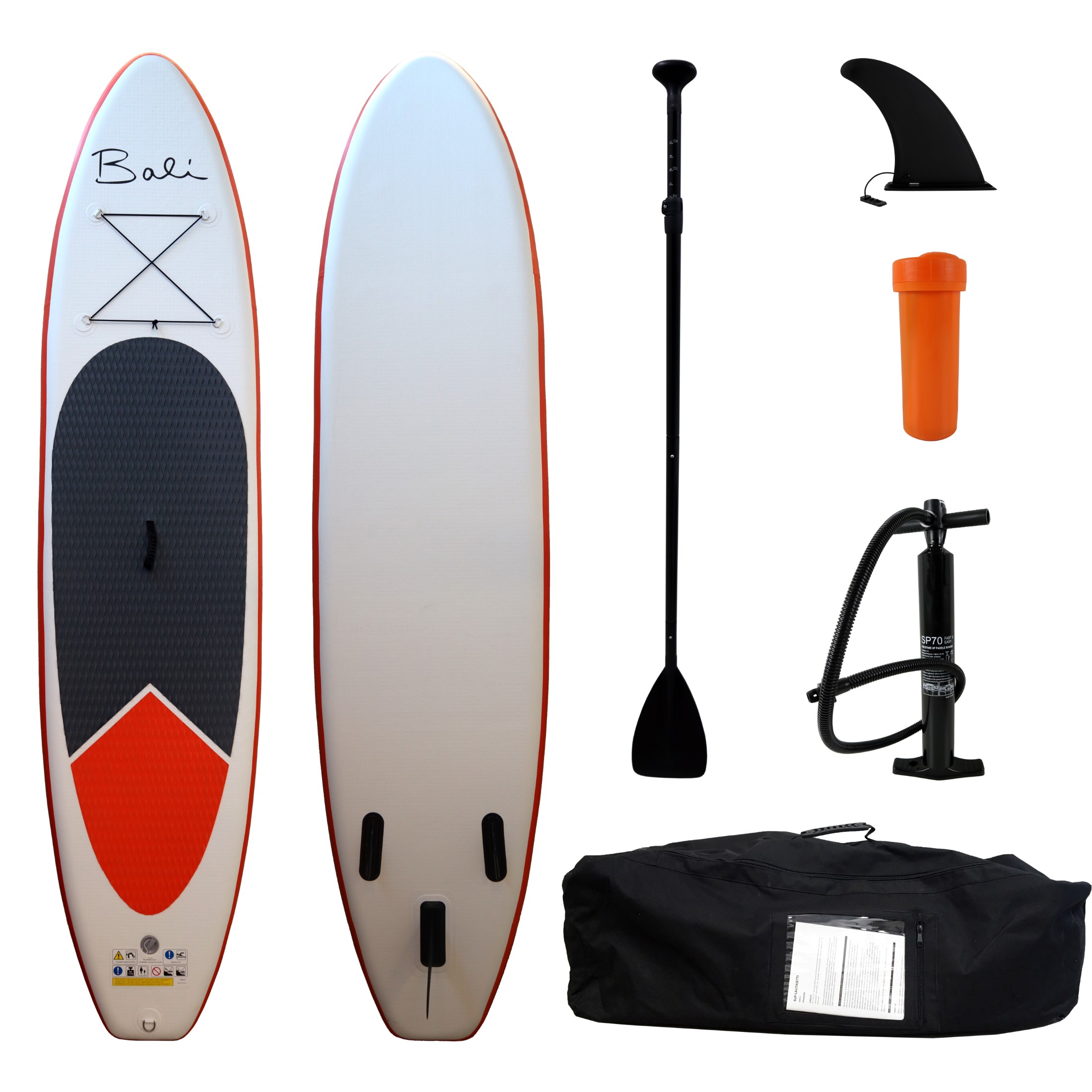 SUP-paddling passar alla som tycker om att vara på vattnet. SUP-paddling är utmärkt för idrottares sommarträning eller för avkopplande kvällspaddling vid stugan. Det är en fantastisk aktivitet för sommardagar. På en SUP-bräda paddlar man stående i mitten av brädan med fötterna axelbrett isär och tårna framåt. Den hopfällbara och uppblåsbara SUP-brädan är lätt att förvara och transportera i den medföljande bärväskan. Den högkvalitativa dropstitch-strukturen med hög trycktålighet håller brädan styv. Den 3-delade justerbara paddeln är lätt och enkel att använda. Brädan har två sidofenor och en centrerad fena som underlättar paddlingen.