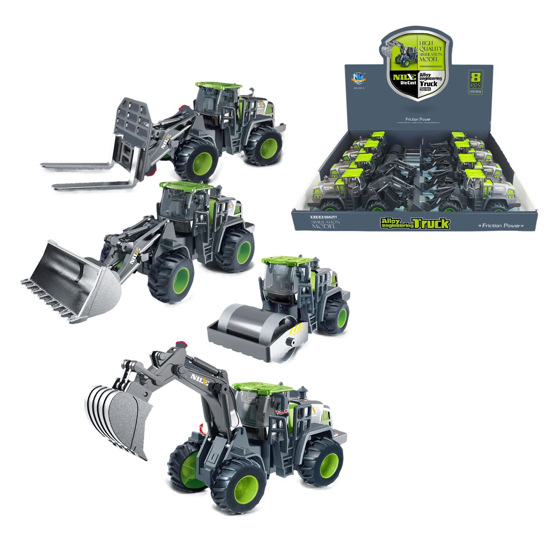 En rejäl arbetsmaskin för vägarbetet! Maskinen har mjuka däck och en friktionsmotor, så att du kan skjuta maskinen i rörelse. Paketet innehåller en produkt. Diverse grävmaskin, vägvält, gaffeltruck och skopor. Skopdelarna på alla maskiner är flyttbara.