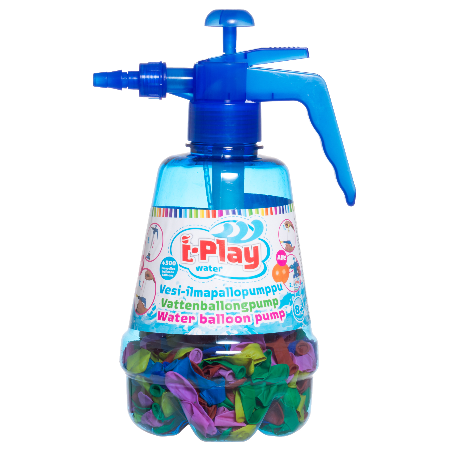 Fyll vattenballonger enkelt och snabbt med en praktisk pumpflaska. Flaskan innehåller 300 vattenballonger. Åldersrekommendation 8+.