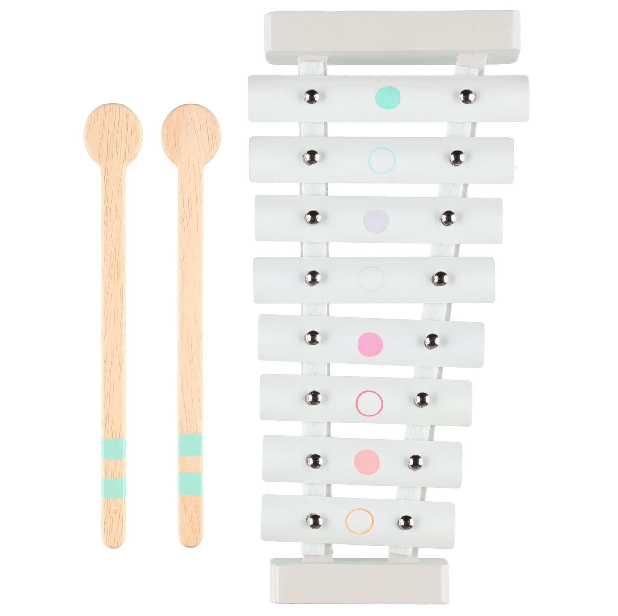 Kysilofonen har en träkropp och pinnar och metallkontakter. Åldersrekommendation 18 månader+.