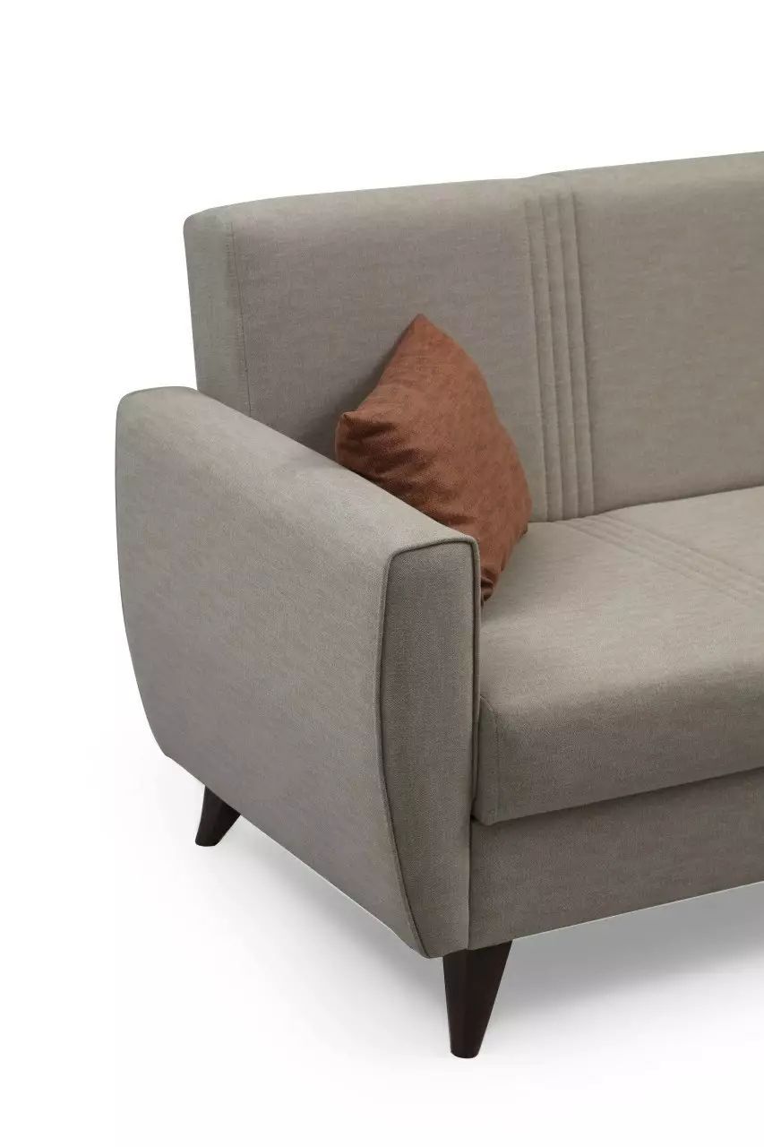 Behöver du en extrasäng för oväntade gäster? Inga problem då! Vår 3-sitsiga bäddsoffa förvandlas enkelt till en bekväm sovplats, vilket ger en mysig tillflyktsort för dina nära och kära. Den robusta metall- och träramen garanterar hållbarhet och stabilitet, medan plastbenen ger en modern touch.
