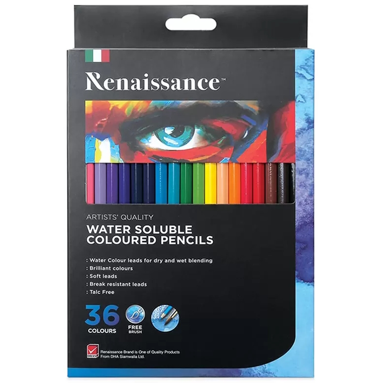 Renaissance-serien med 36 vattenlösliga akvarellpennor som ger mångsidiga, måleriska effekter. Fylligt pigment och bra ljusbeständighet. Inkluderar pensel.