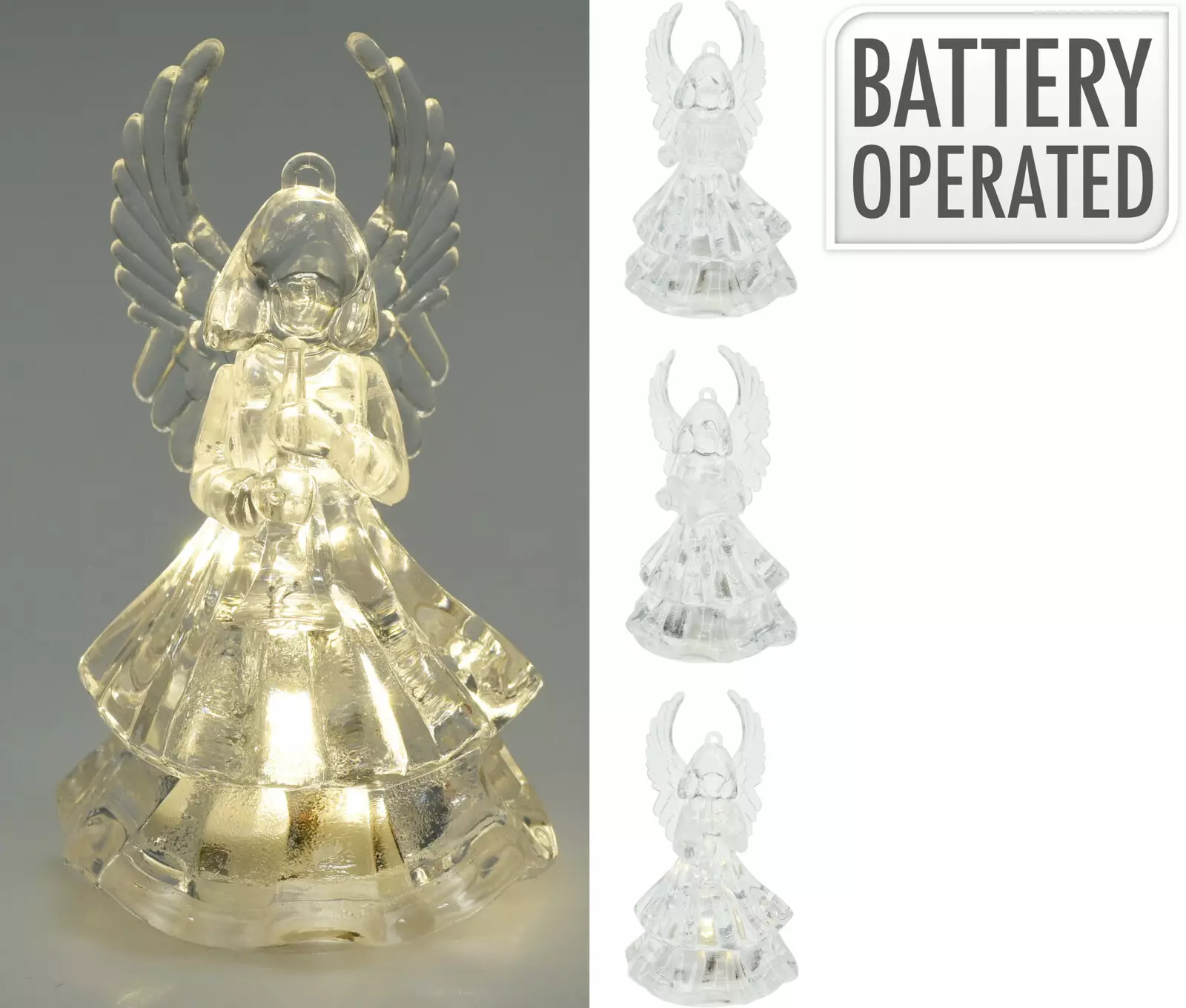 Set med tre änglar, var och en med ett varmvitt LED-ljus. Batterier ingår.