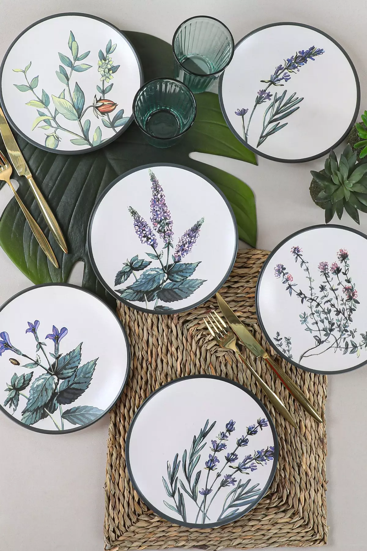 Assietter Set Hermia Vit Grön Lila Svart Keramik 6 Delar