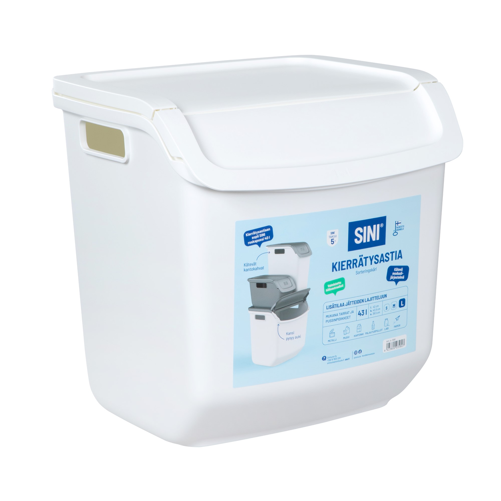 En snygg behållare med smarta detaljer för sortering av hushållsavfall. Återvinningskärlet ger extra utrymme för förvaring av avfall och underlättar återvinningen. Tunnan lämpar sig för en mängd olika hemutrymmen, som kök, grovkök och hall. Återvinningsbehållaren fungerar ensam, men det är också bekvämt att montera en kombination av behållarna för flera typer av avfall bredvid varandra och/eller staplade. Två återvinningskärl får plats under de flesta köksbänkar. Behållaren har hållare för en soppåse. Behållarens lock förblir öppet, vilket gör det enkelt att fylla, bära och tömma behållaren.
