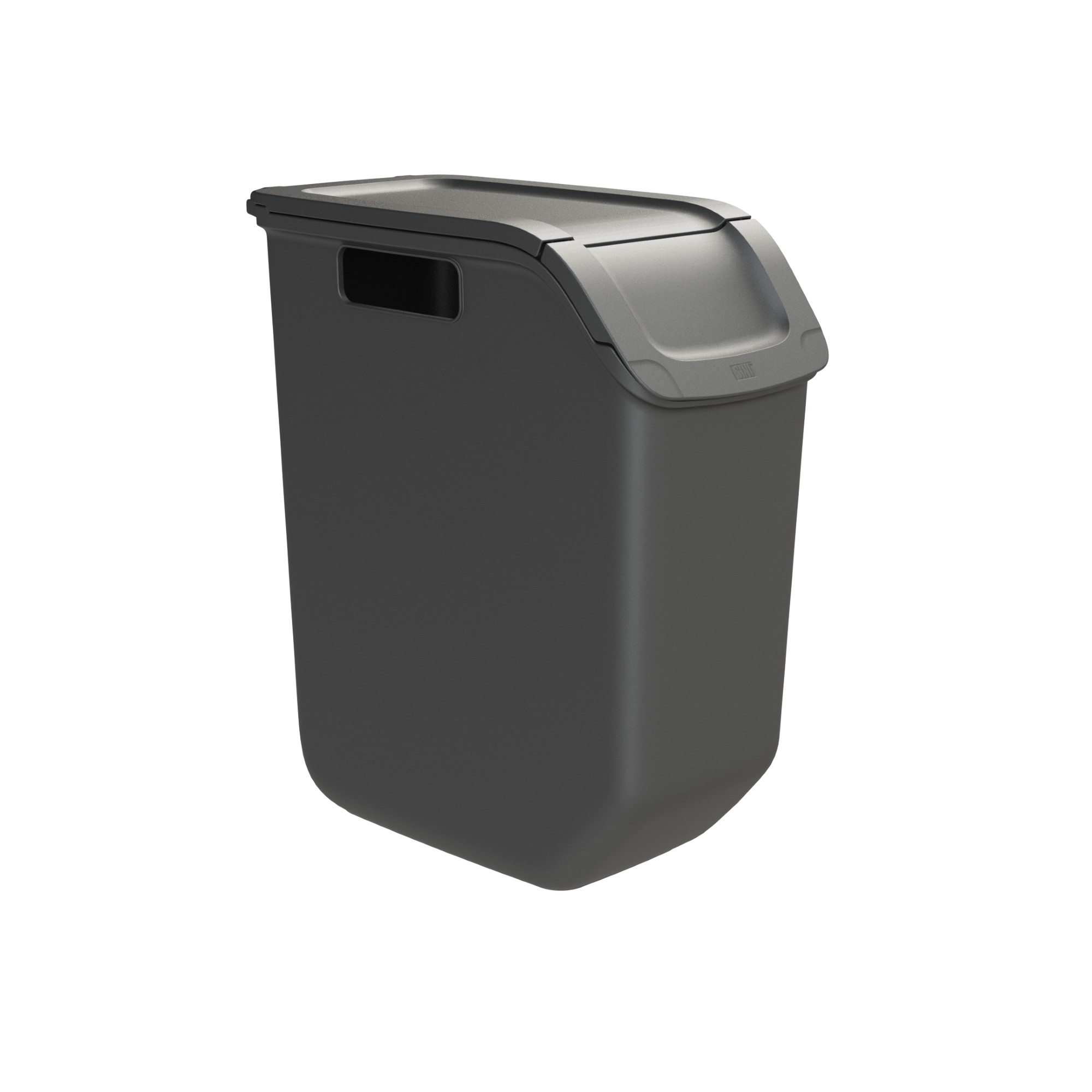 En snygg behållare med smarta detaljer för sortering av hushållsavfall. Återvinningskärlet ger extra utrymme för förvaring av avfall och underlättar återvinningen. Tunnan lämpar sig för en mängd olika hemutrymmen, som kök, grovkök och hall. Återvinningsbehållaren fungerar ensam, men det är också bekvämt att montera en kombination av behållarna för flera typer av avfall bredvid varandra och/eller staplade. Två återvinningskärl får plats under de flesta köksbänkar. Behållaren har hållare för en soppåse. Behållarens lock förblir öppet, vilket gör det enkelt att fylla, bära och tömma behållaren.