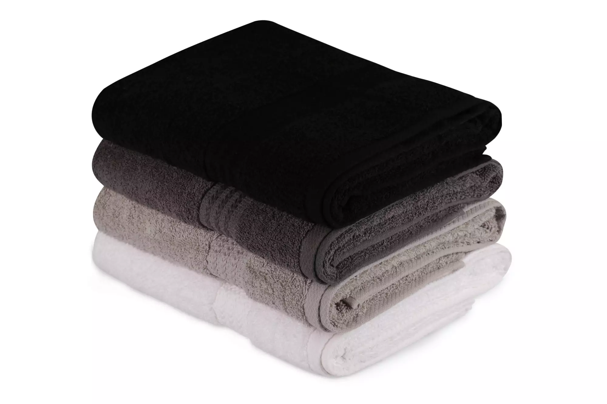 Badhandduksset (4 st), vit, grå, mörkgrå, svart, 70 x 140 cm, mjuk, hållbar, lyxig