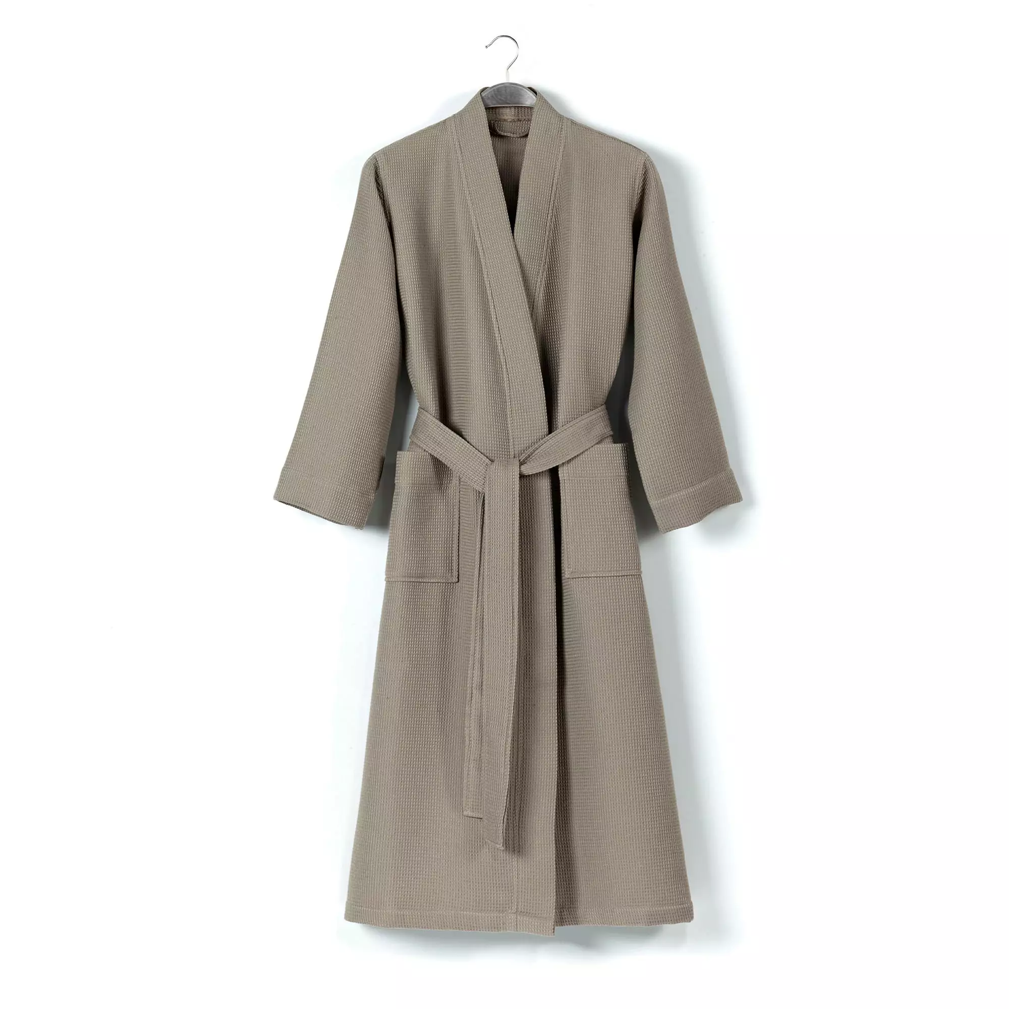 Vår morgonrock i varmgrå färg utstrålar elegans och sofistikering. Den tidlösa designen är perfekt för både män och kvinnor, vilket gör den till ett mångsidigt tillskott i din garderob. Oavsett om du njuter av en lat söndagsmorgon eller gör dig redo för ett speciellt tillfälle, kommer vår morgonrock att få dig att känna dig elegant utan ansträngning.