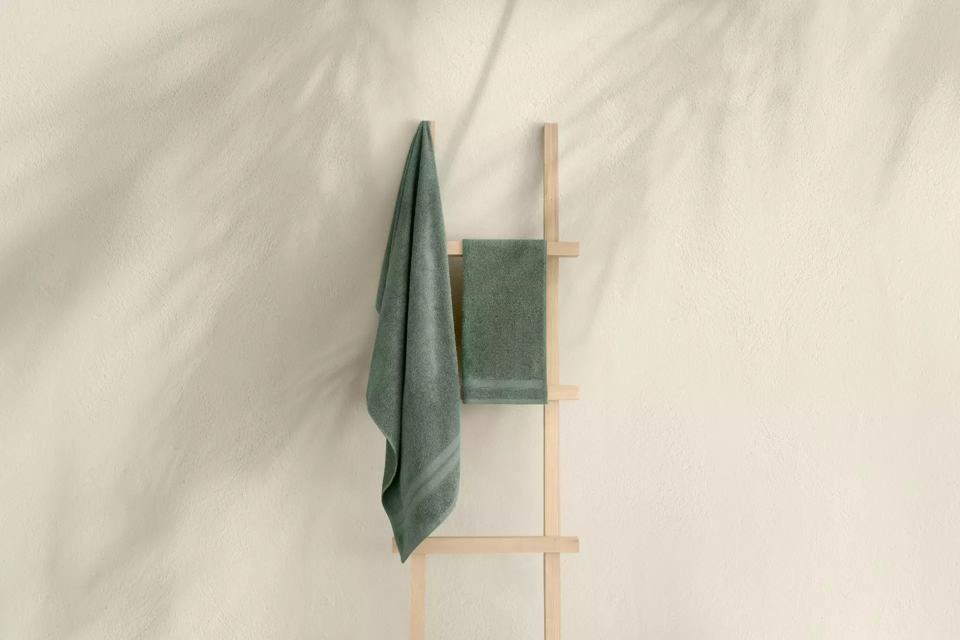 Vårt badhandduksset kommer i en fantastisk nyans av grönt, vilket ger en färgklick och sofistikering till din badrumsinredning. Lyft ditt utrymme med dessa eleganta handdukar som är lika vackra som de är funktionella.
