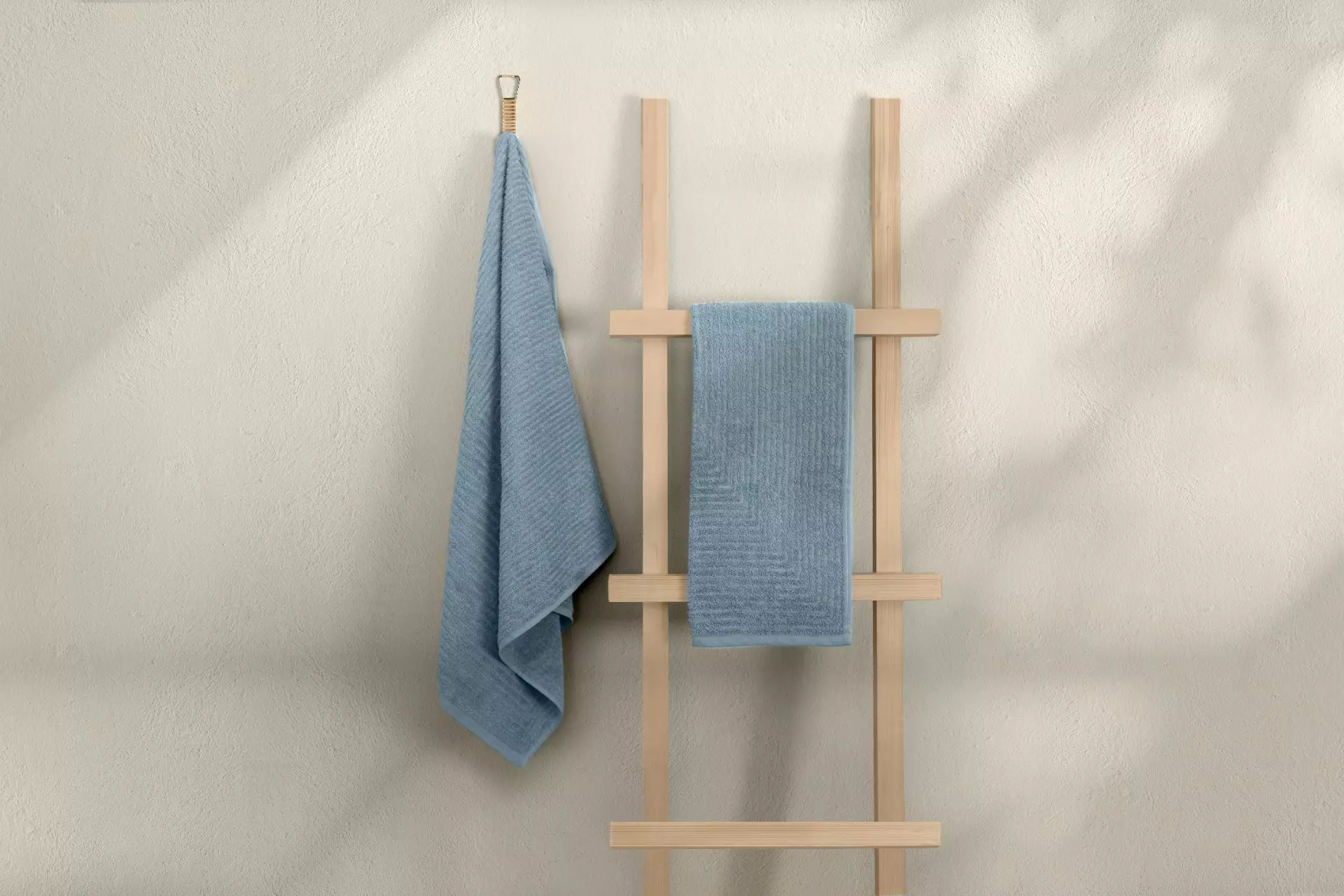 Vårt badhandduksset kommer i en vacker blå färg som ger en touch av elegans till alla badrumsinredningar. Den livfulla nyansen kommer att lysa upp ditt utrymme och skapa en lugnande atmosfär för en riktigt avkopplande upplevelse.