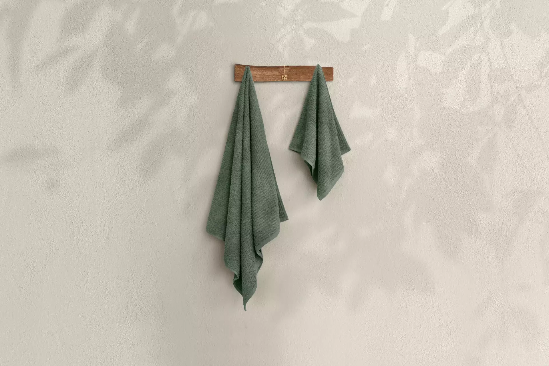 Vårt badhandduksset består av två delar: en handduk och en badhandduk. Handduken mäter 50 x 90 cm, medan badhandduken mäter 70 x 140 cm, vilket ger dig de perfekta storlekarna för alla dina behov.