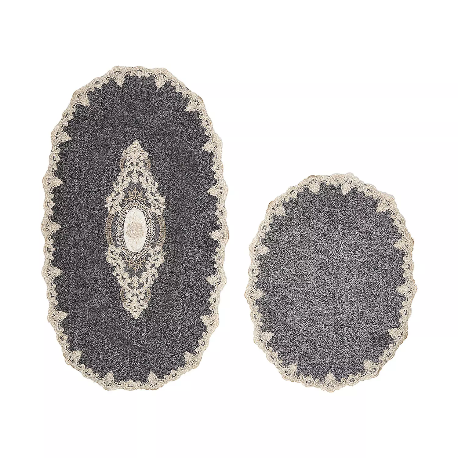 Badrumsmatta Set L'essentiel Antracit 100% Polyester Halkfri Antibakteriell 55x65 cm & 65x115 cm