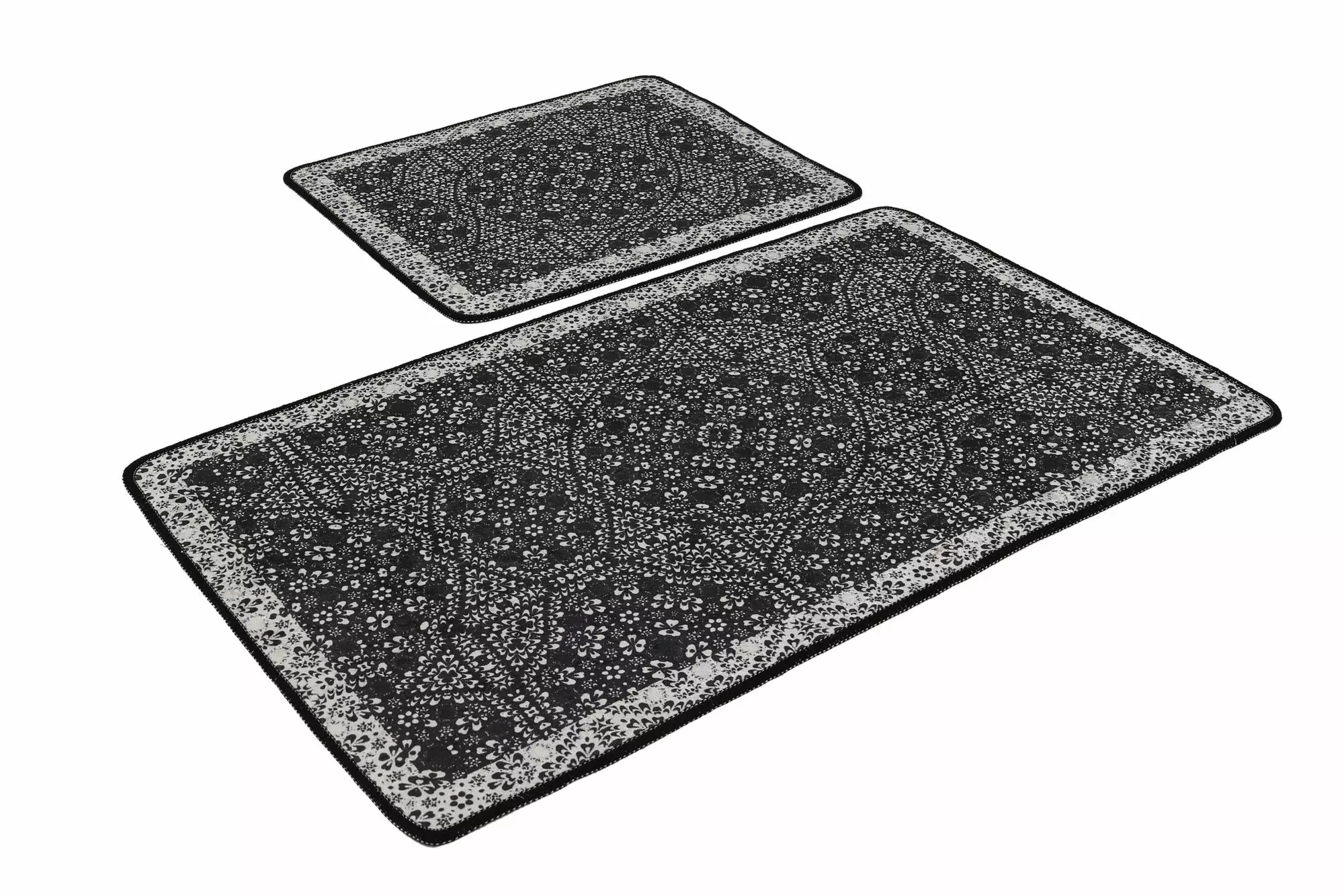 Med sitt fantastiska digitaltryck ger vårt badmattsset en touch av elegans och sofistikering till alla badrum. Den vackra kombinationen av färgerna svart, antracit och vitt skapar en modern och elegant look som kommer att imponera på dina gäster.