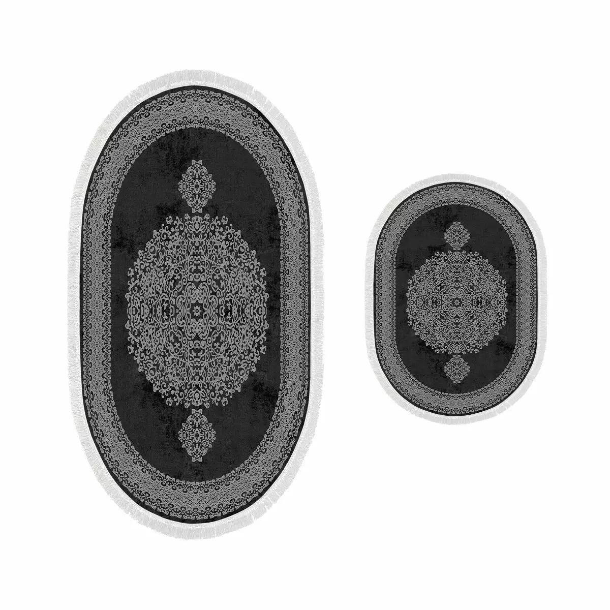 Badrumsmatta Set Mijölnir Svart Halkfri Antibakteriell Polyester 50x60 cm & 60x100 cm