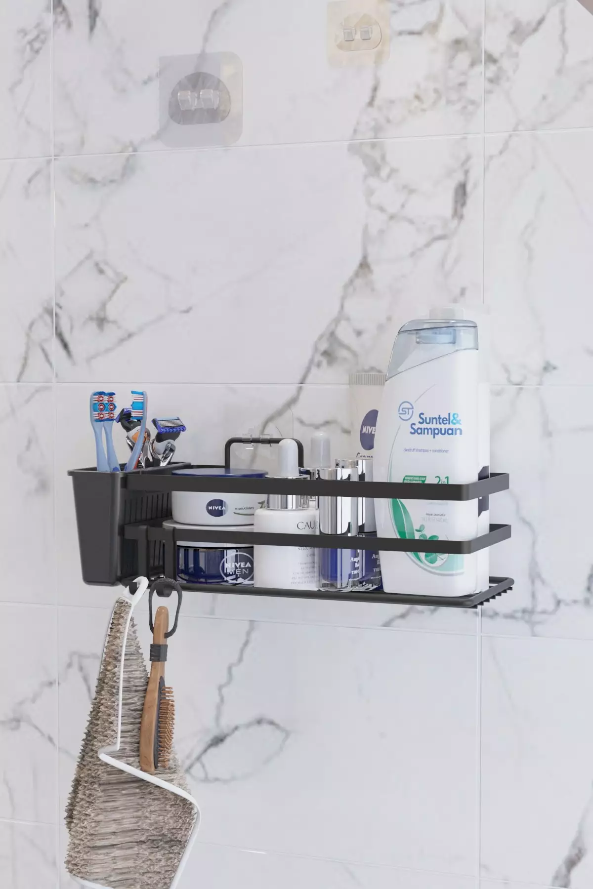 Med måtten 27,5 x 8,5 x 8,5 cm är vår organisatör kompakt nog att få plats på vilken bänkskiva eller hylla som helst, vilket sparar värdefullt utrymme i ditt badrum. Den stiliga svarta färgen ger en modern touch till vilken inredning som helst, vilket gör den till ett stiligt tillskott i varje badrum.