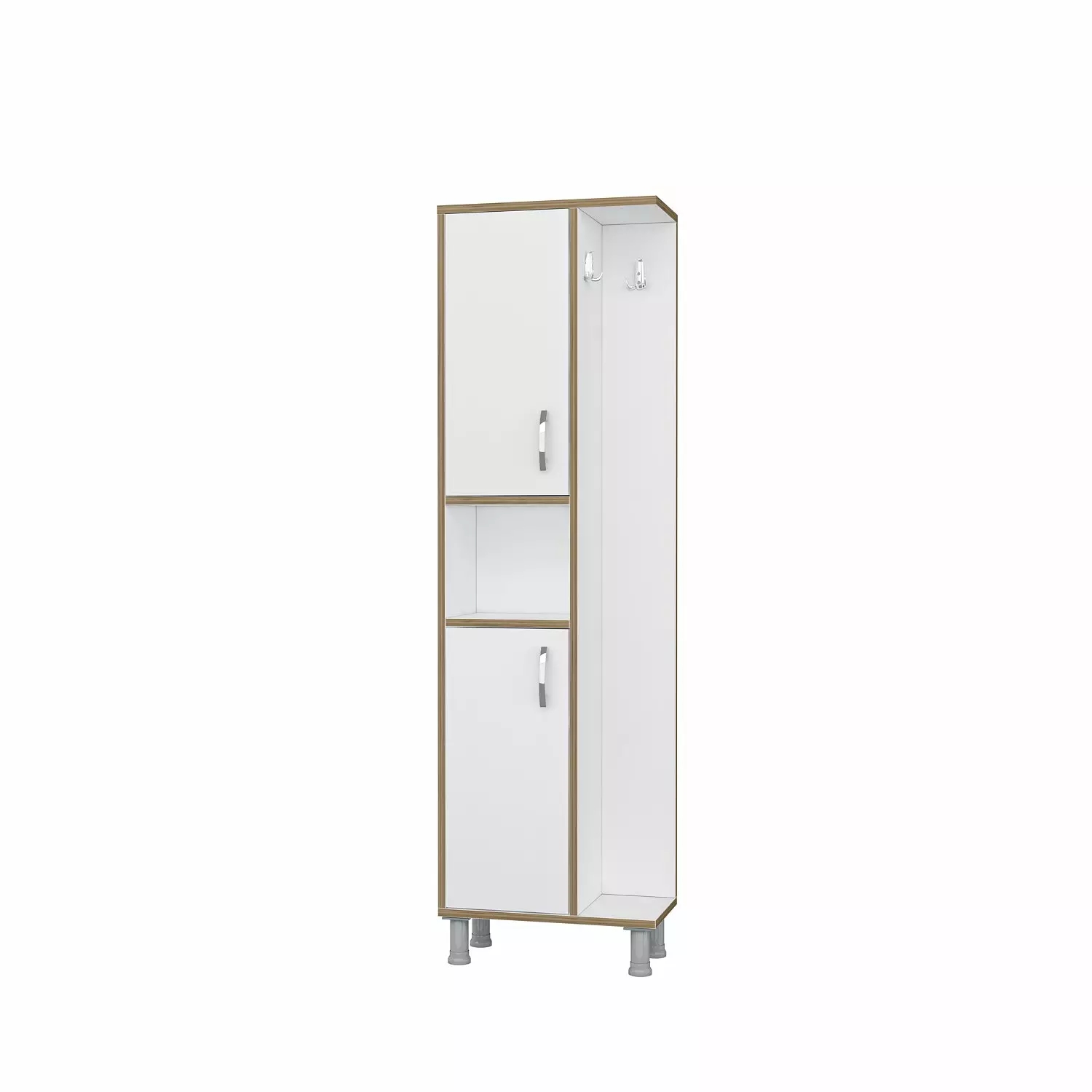 Med många hyllor erbjuder detta skåp gott om utrymme för att förvara alla dina badrumsartiklar. Från handdukar till toalettartiklar, allt kommer att ha sin bestämda plats och hålla ditt badrum organiserat och fritt från röran.