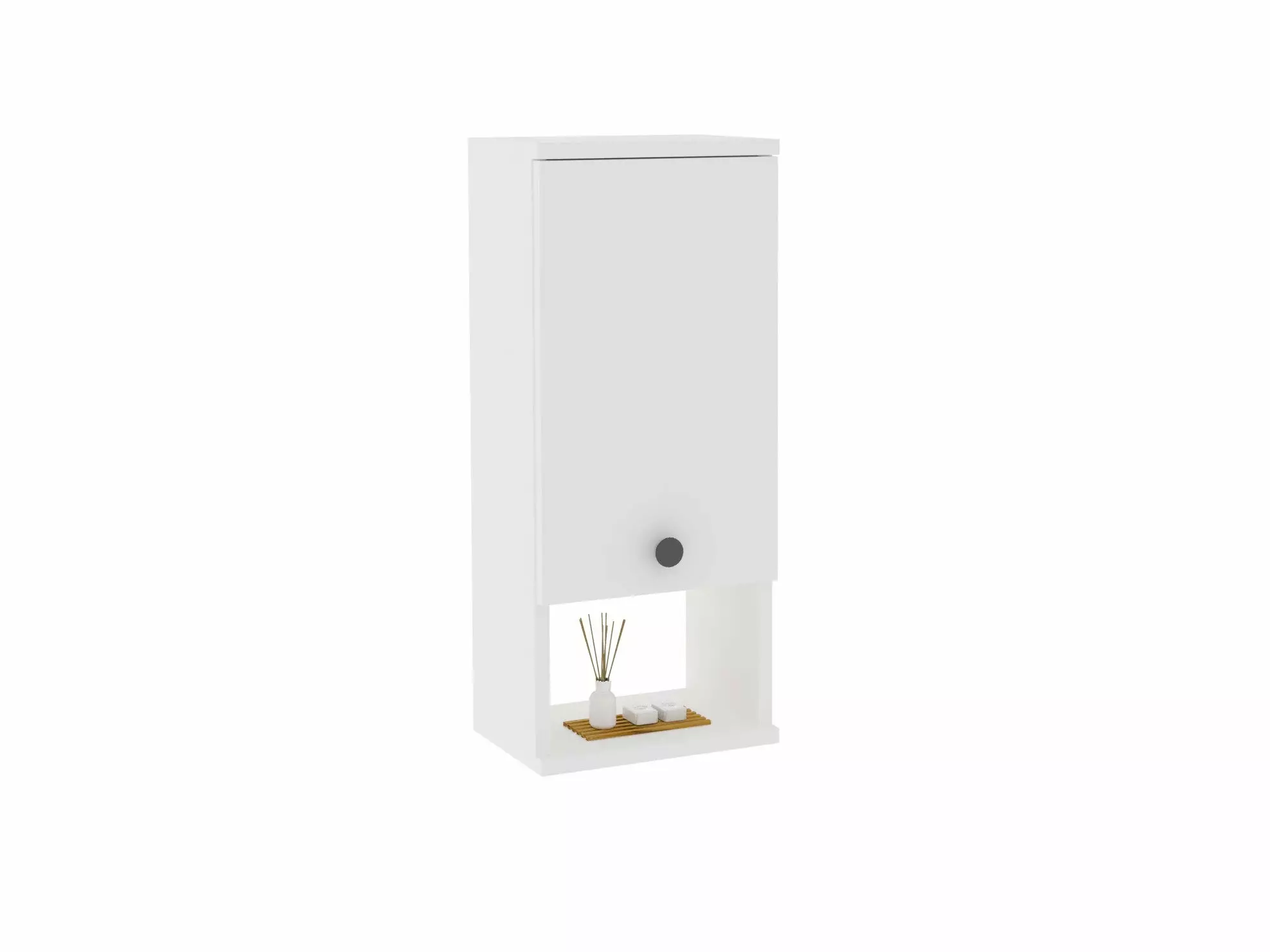 Vårt badrumsskåp kan enkelt fästas på väggen, vilket sparar värdefull golvyta och ger ditt badrum ett rent och modernt utseende. Den vita färgen ger en touch av elegans och smälter sömlöst in i alla badrumsinredningar.