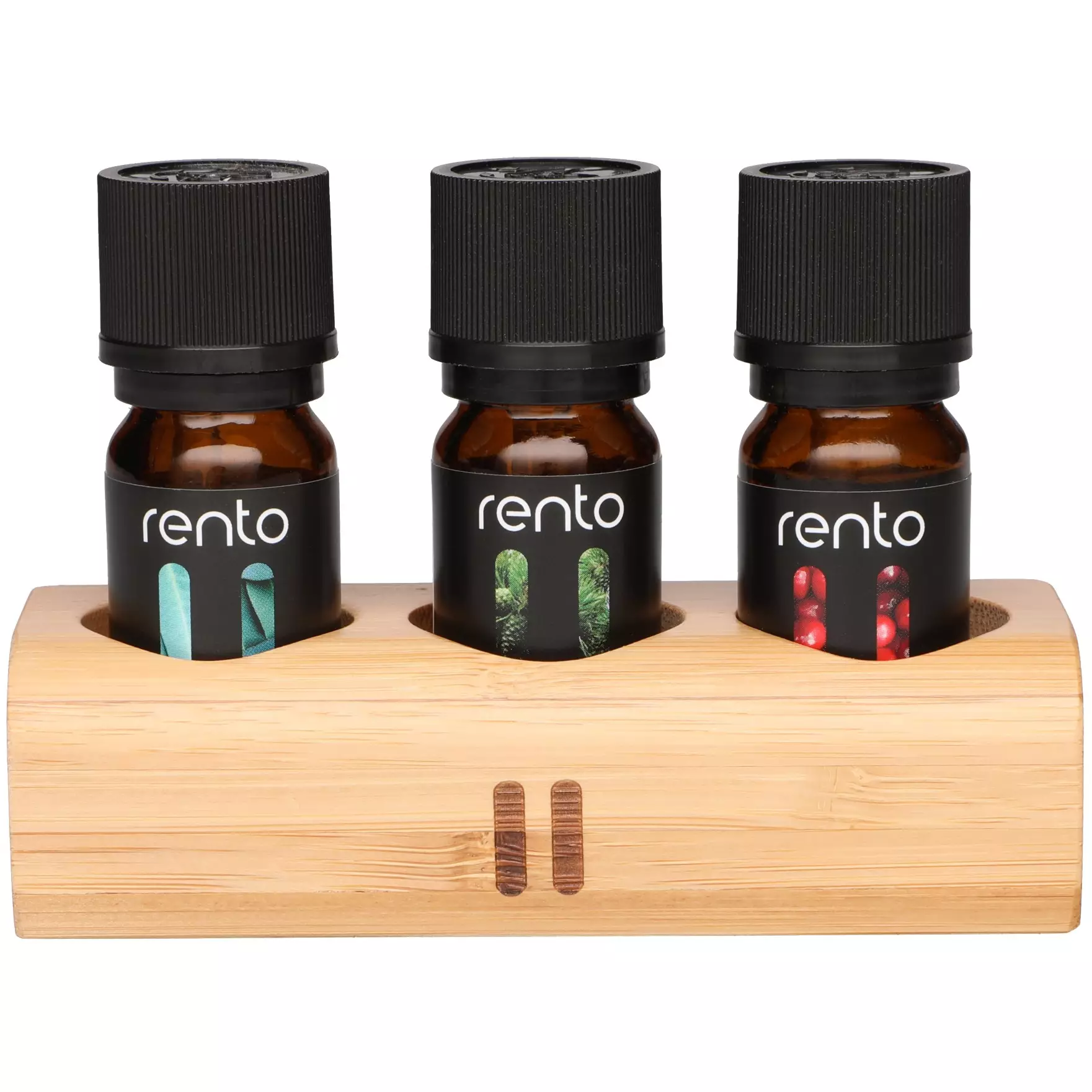Upplev avkopplande bastu med Rento bastudofter, stött av en vacker bambuhållare. Innehåller tre dofter: Eukalyptus, Skogskåda och Lapplandsbär.