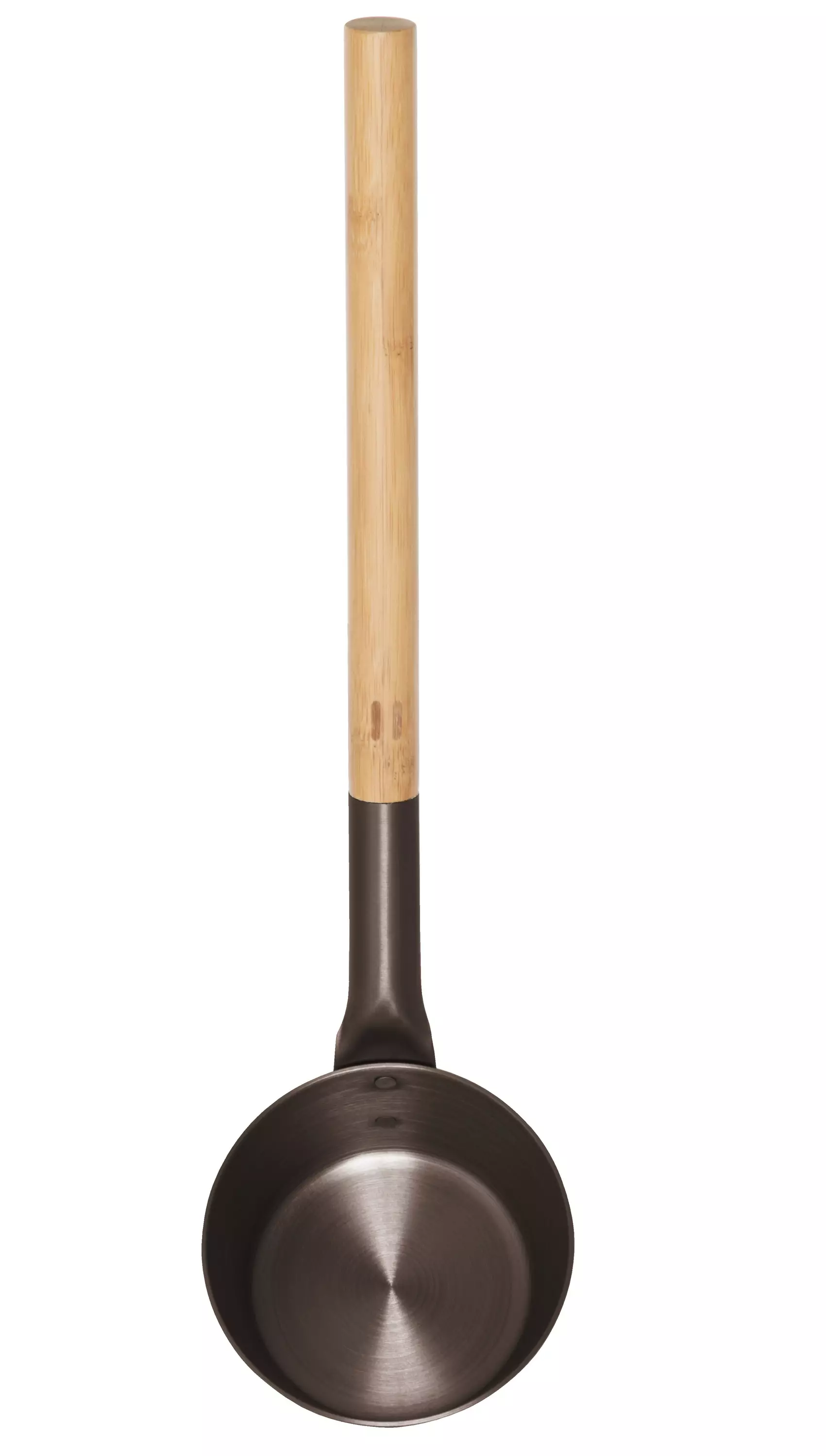 Tidlös stilren design kombinerat med en behändig design. Metalldelen är färgad anodiserad aluminium och handtaget är värmebehandlad bambu. Kompatibel med både aluminium och bambu bastuhinkar.