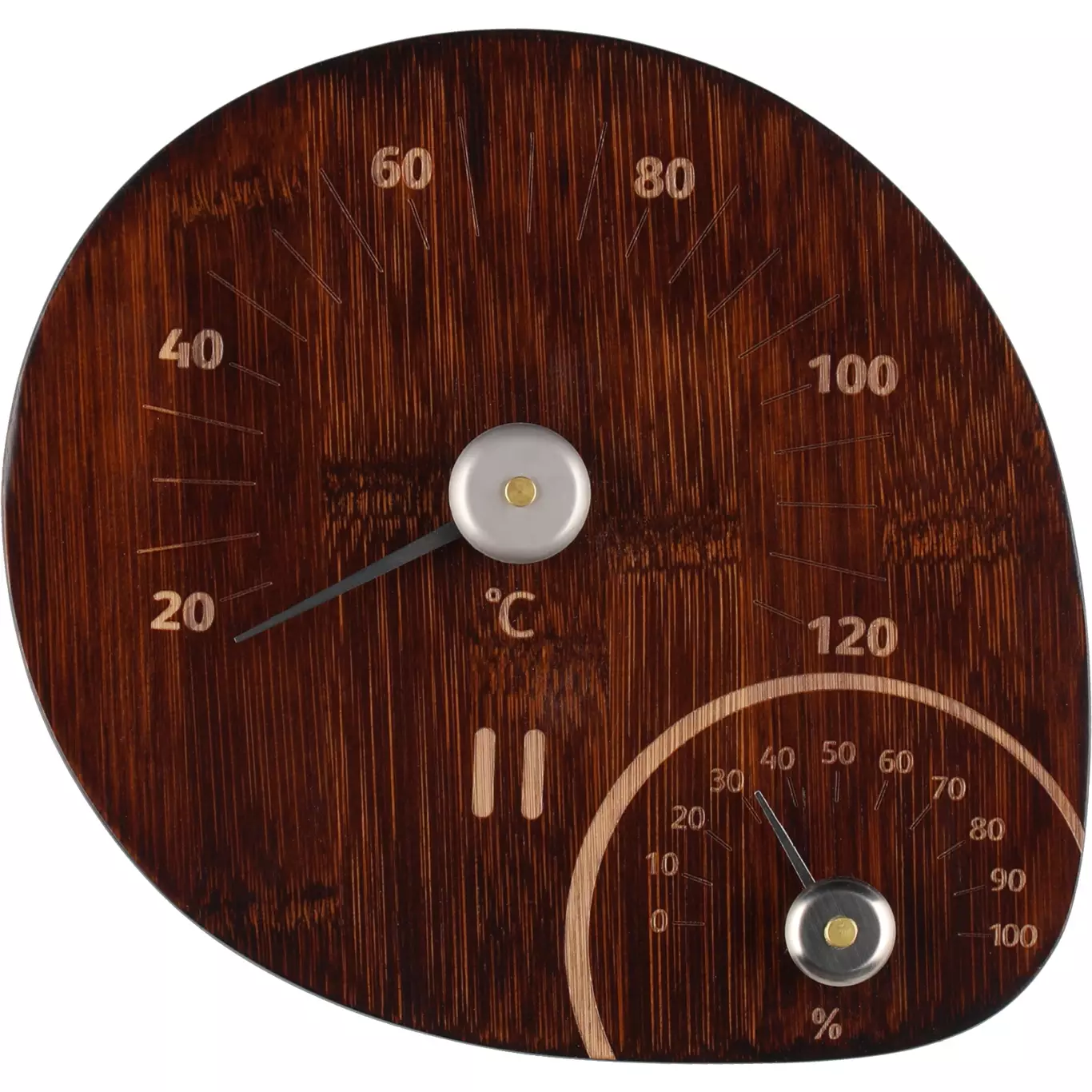 Denna bastutermometer och hygrometer tillverkad av bambu är en viktig tillgång i varje bastu. Den mäter inte bara bastuns temperatur och fuktighet utan bidrar också till en naturligt vacker element i bastuns inredning. Med denna mätare kan du säkerställa att bastuns förhållanden är precis rätt för en avkopplande och hälsosam bastuupplevelse.
