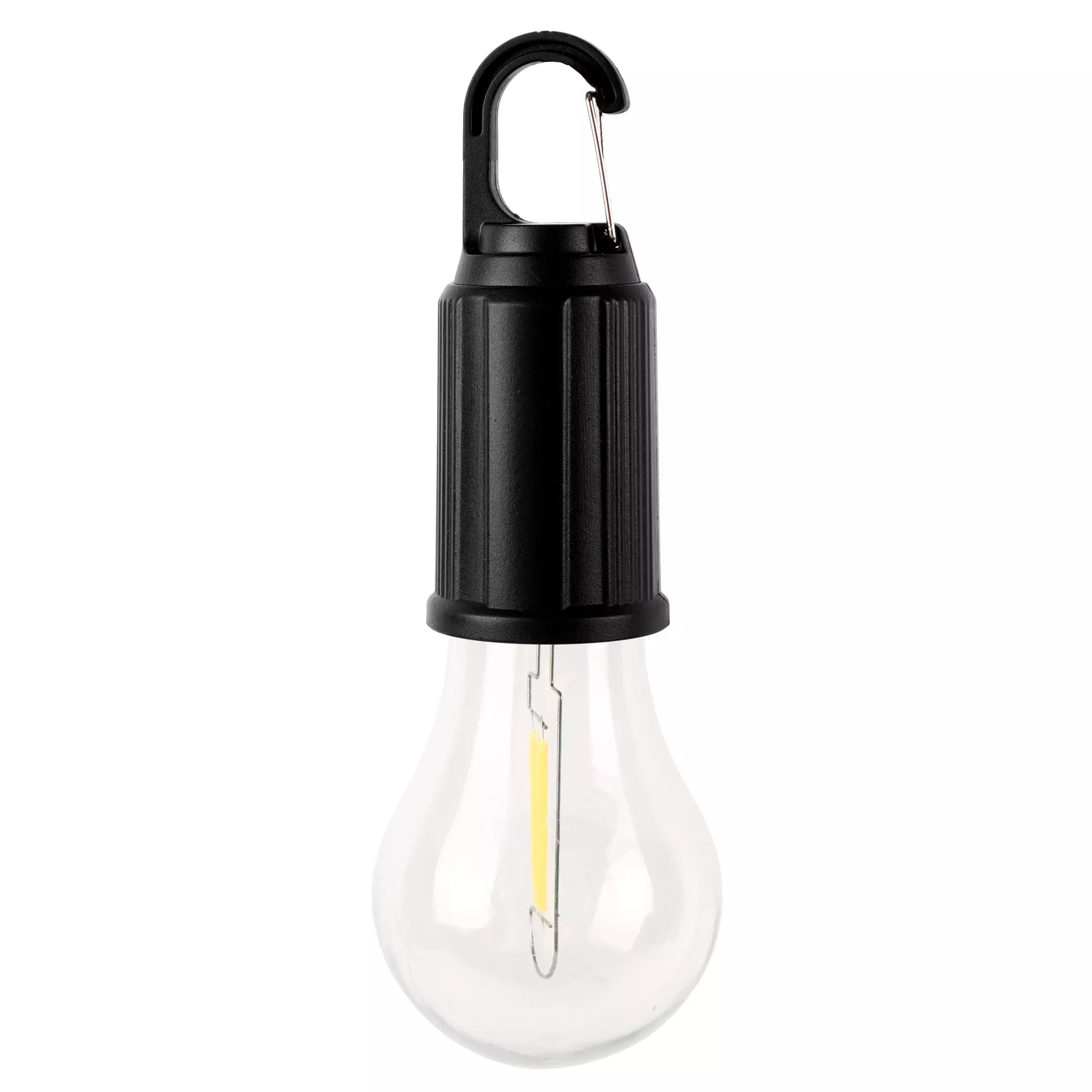 En uppladdningsbar lampa som ser ut som en glödlampa med en hängslinga. Varm ljus färg, tre intensiteter. Ljuskällan är en LED-glödtråd som imiterar glödtråden från en glödlampa.