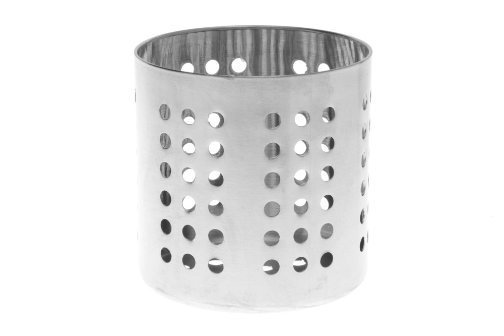 Den behändiga bestickhållaren torkar bestick, slevar och redskap eller fungerar som en hållare till borstar och kammar, pennor eller till och med som ljuslykta...rostfritt stål! Hål även i botten, maskintvättbar. Höjd ca 15 cm, diameter ca 10 cm.