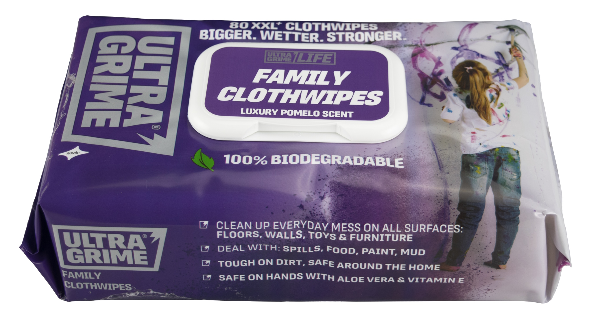 UltraGrime Life Family XXL+ – 100 % biologiskt nedbrytbara rengöringsdukar (80 st)