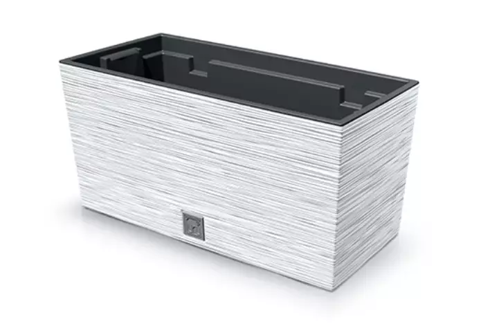 Blomkrukan Case 60 cm är en modern och mångsidig balkonglåda, perfekt för blommor och växter. Dess livfulla ytmönster och eleganta vita färg gör den till ett stilrent val för balkonger, terrasser och fönsterbrädor.