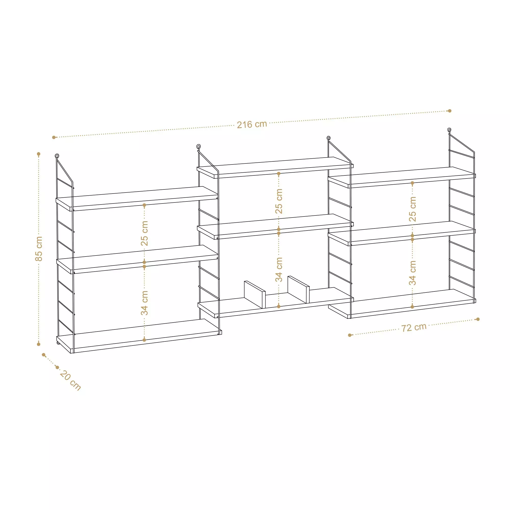 Med många hyllplan erbjuder denna bokhylla gott om utrymme för att organisera dina böcker, tidskrifter, fotoramar och mycket mer. Skapa en personlig hylla som speglar din unika stil och dina intressen. Oavsett om du är en bokmal eller en samlare, kommer vår bokhylla att rymma alla dina skatter och hålla dem inom räckhåll.
