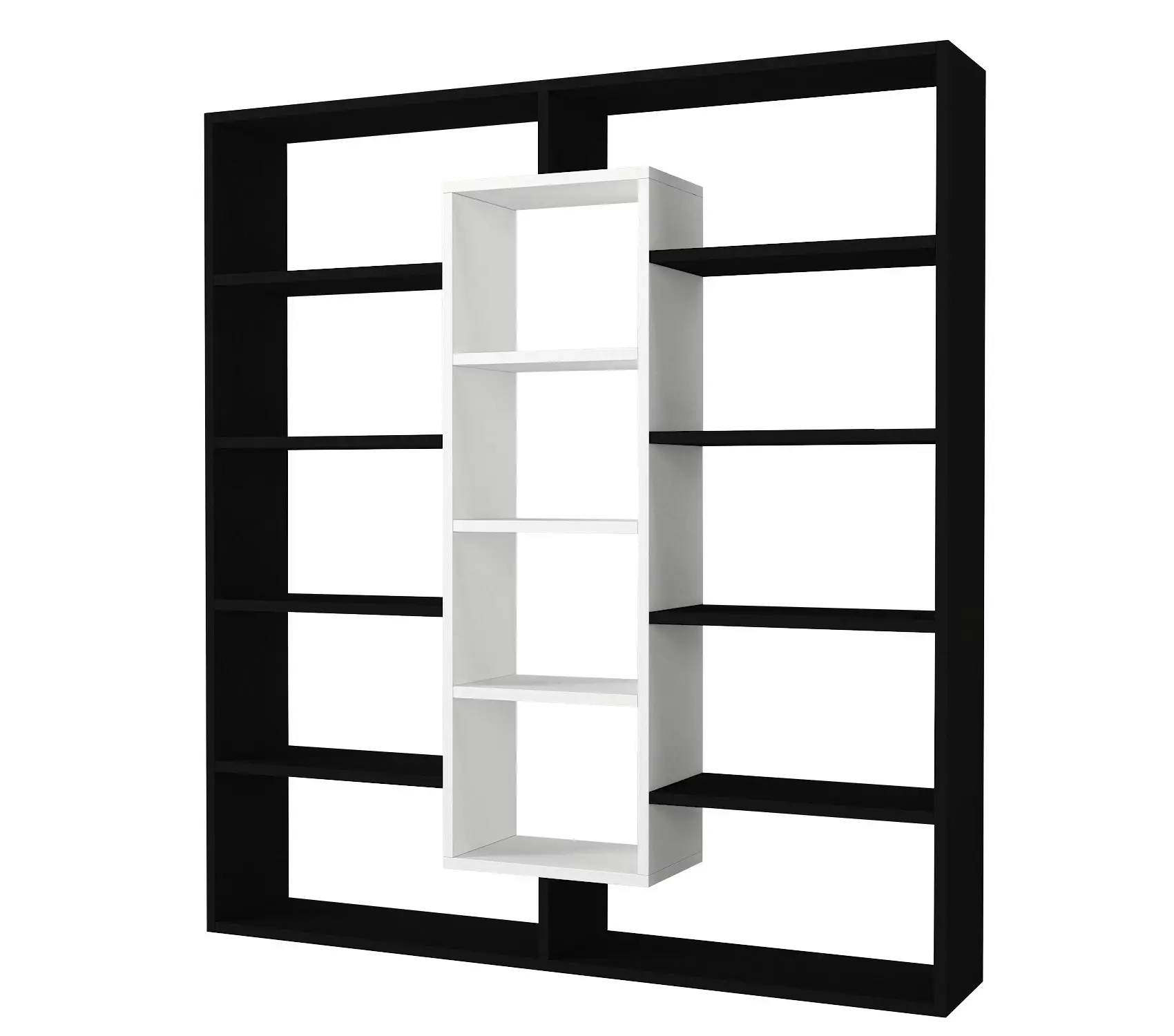 Denna bokhylla är tillverkad av 100% melaminbelagd spånskiva och är inte bara hållbar utan utstrålar också en känsla av sofistikering. Den svartvita färgkombinationen ger en modern och elegant touch till alla inredningar, vilket gör den till ett perfekt tillskott till ditt hem eller kontor.